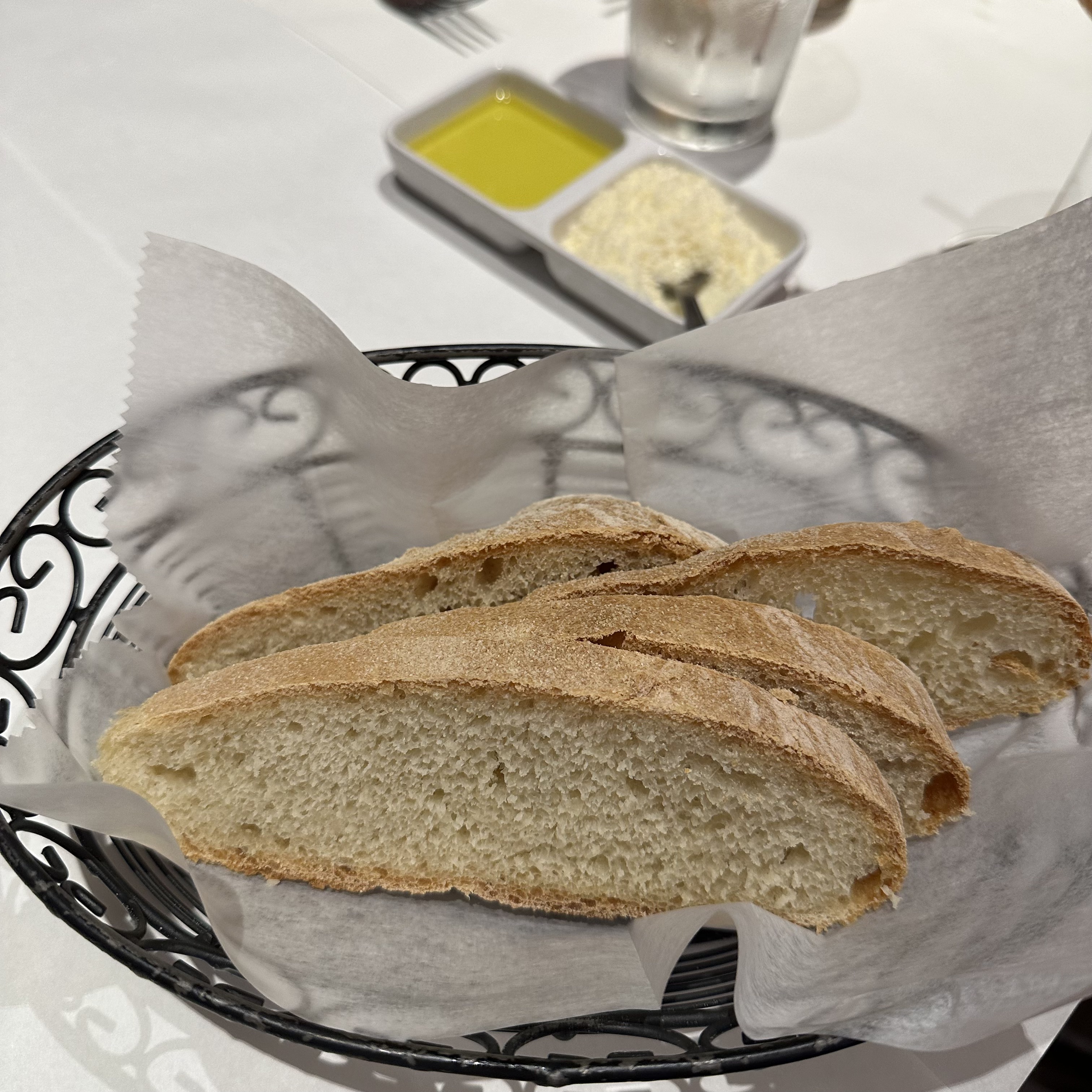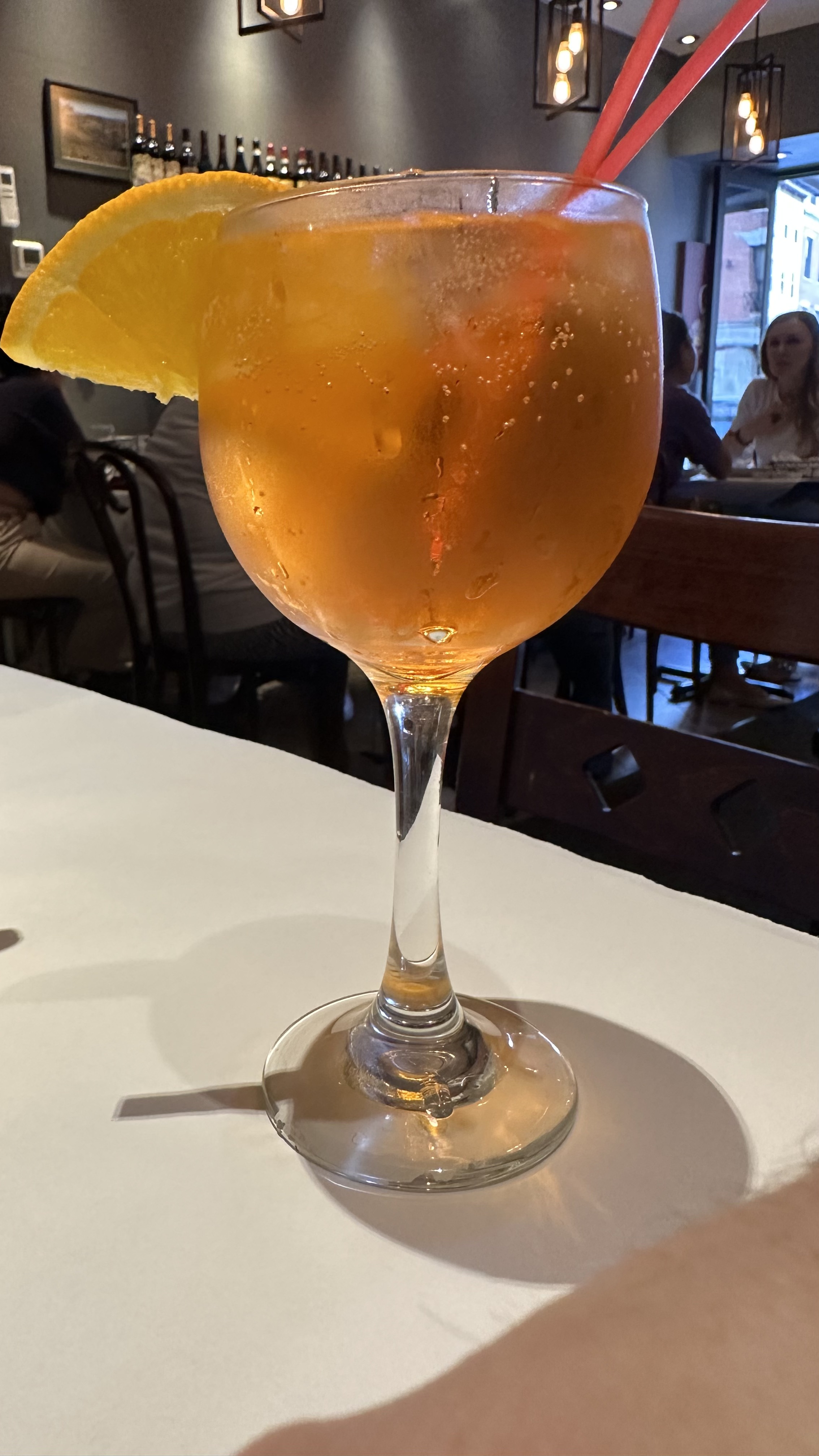 I started with an Aperol Spritz, a favorite in the North End. They also brought warm bread with olive oil and parmesan cheese. We ordered meatballs. Three to an order, they were a delicious blend of pork and beef in a tomato sauce with shaved parmesan and a small piece of garlic toast that should be an appetizer on its own.