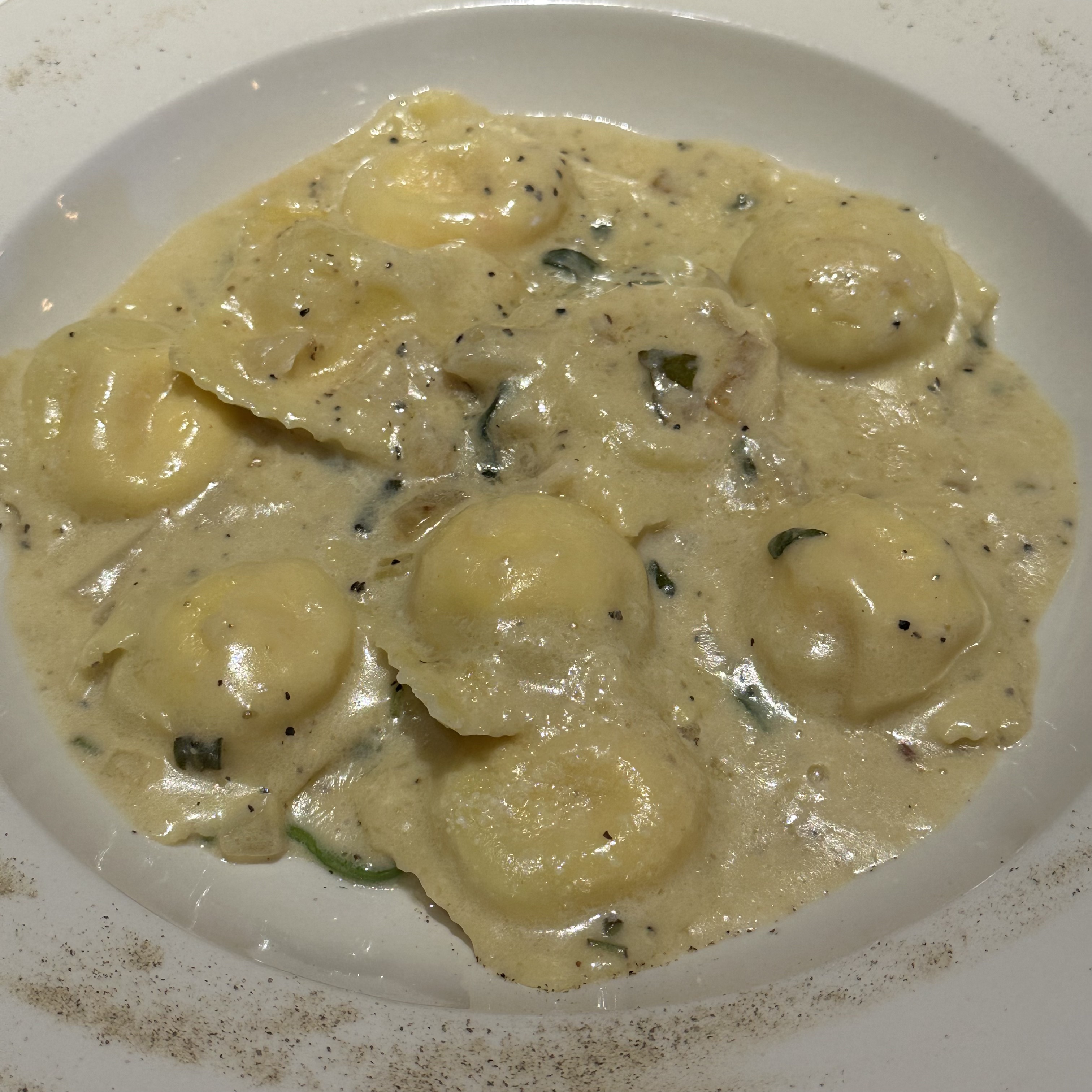 Of course, we went for the fresh pasta. I ordered the Spaghetti Vongole, heavenly fresh pasta in a white wine and garlic sauce topped with clams. It was fantastic. My wife got the lobster ravioli, made with fresh pasta and stuffed generously with lobster. It was topped by an incredibly rich mascarpone veloute.