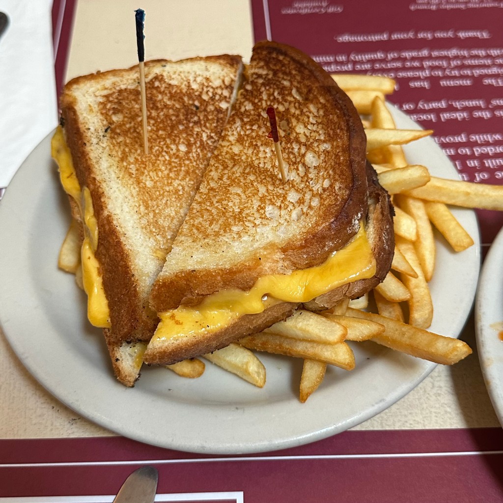 My son, who wouldn’t eat a buffalo wing if you offered him a million dollars, got grilled cheese and french fries. They make a damn near perfect grilled cheese at Gabriel’s Gate, and I do encourage you to get your kid to order one, assuming they won’t eat buffalo wings either. Here’s why: you can steal some from them and rub it around in the left over wing sauce and have some of the best grilled cheese you could ever hope to enjoy. And that was my final bite at Gabriel’s Gate.