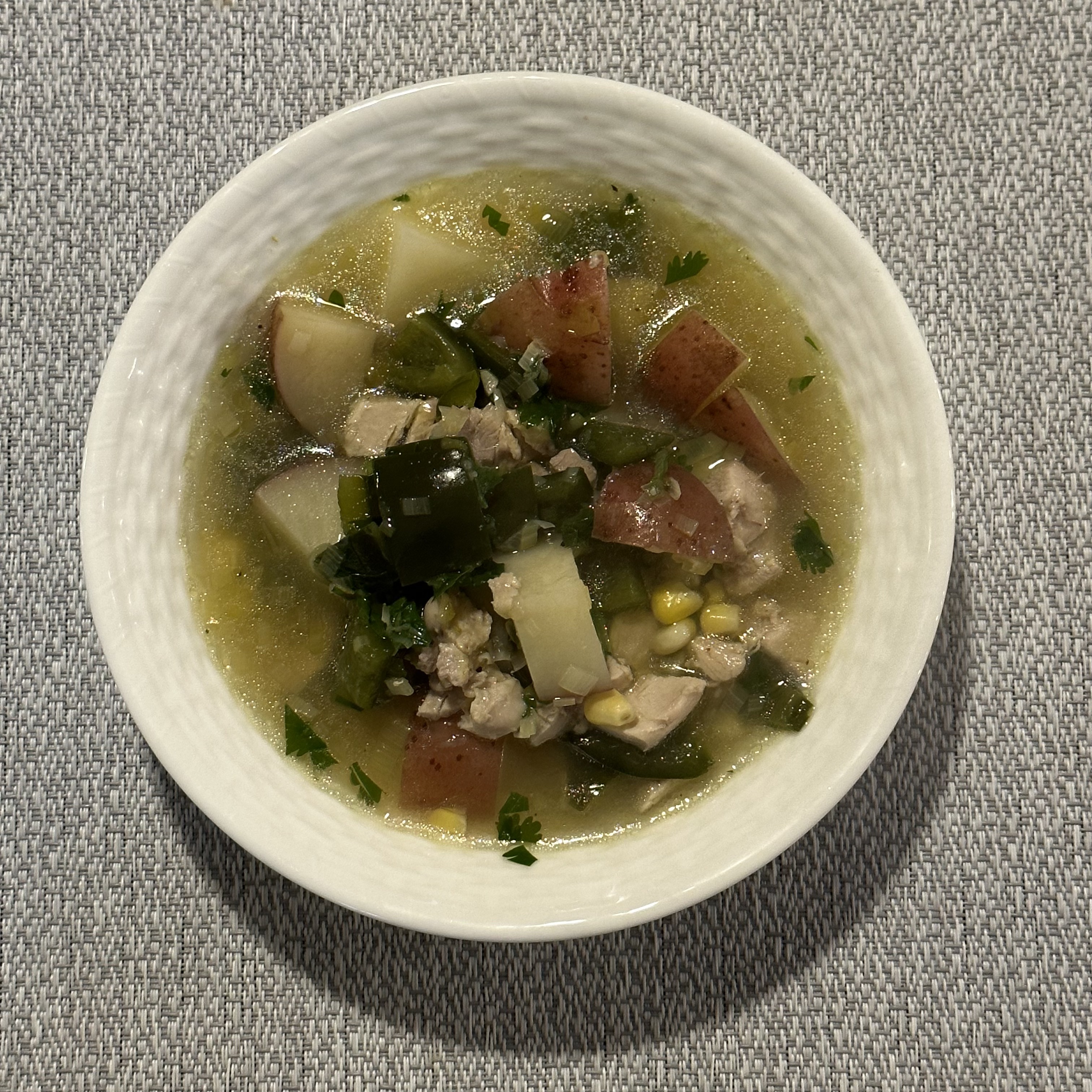 For dinner I made a soup of leeks, poblano, potato, corn, chicken, and cilantro. It was quite good though Kelly suggested it could use a little lime and I think she’s right. After that, I attempted to make ketchup from one little cherry tomato my five-year-old grew. It kind of worked, so I tried to make a little bit bigger batch out of three roma tomatoes. The real proof will be tomorrow, but tonight I dipped some chips in it to taste and it isn’t bad.