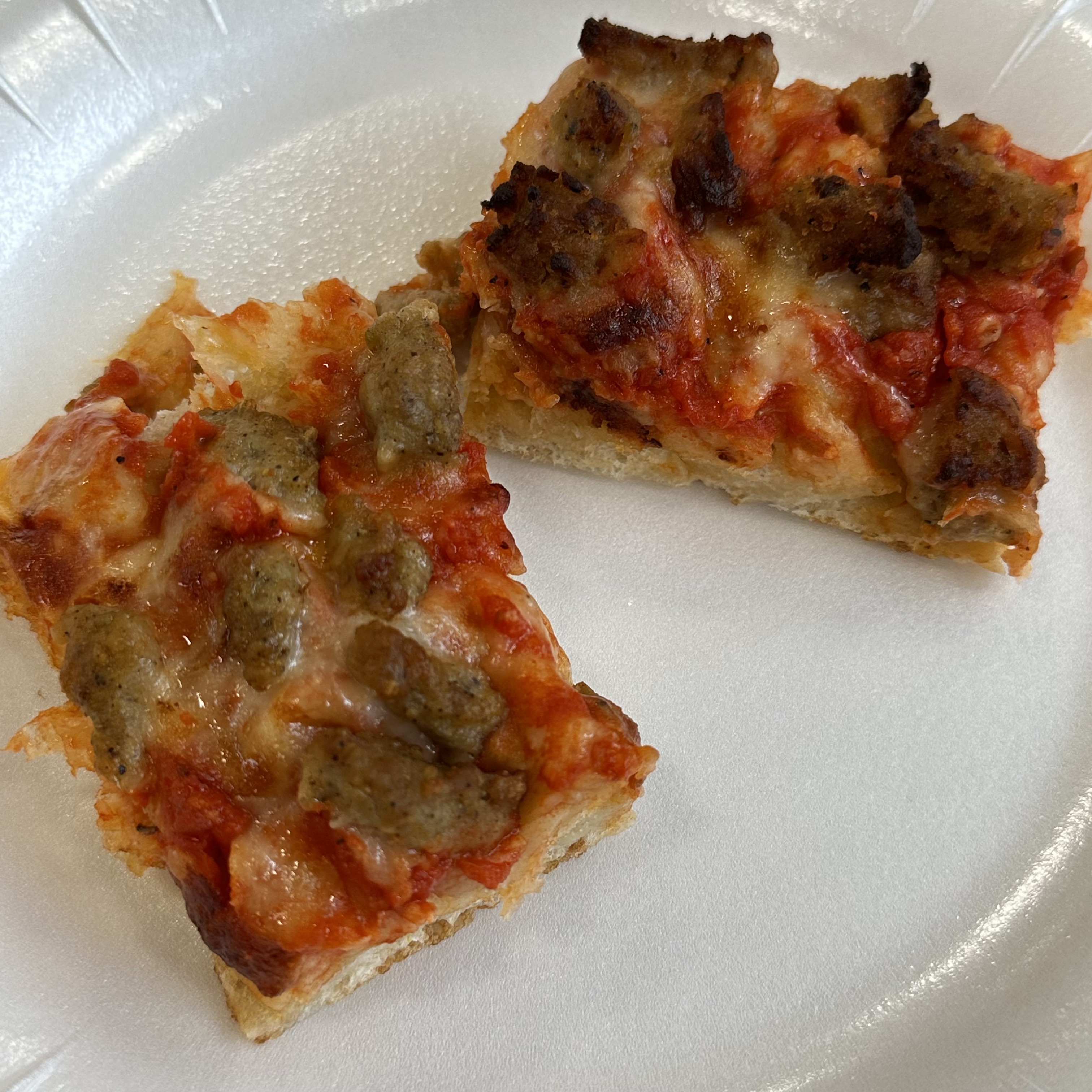 I started out the day nibbling on some pretzels, but then a package appeared on my door. It was an early birthday present from my mom filled with Imo’s pizzas. Since I was home with my son for the day, I popped a cheese pizza in the oven and we shared it for lunch.