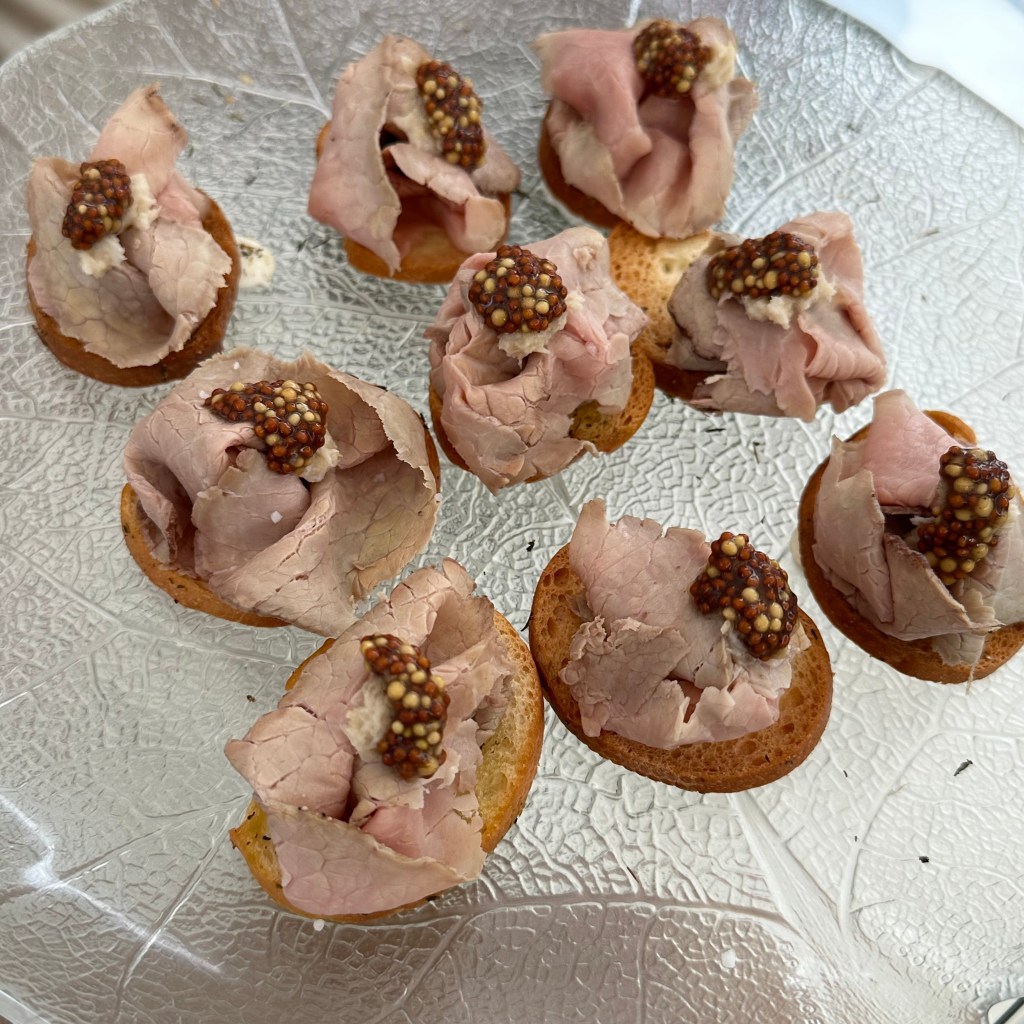 In addition to spirits, Spirits in Niagara has exceptional food. First we tried the roast beef crostini which features gin marinated roast beef, horseradish cream, and mustard.