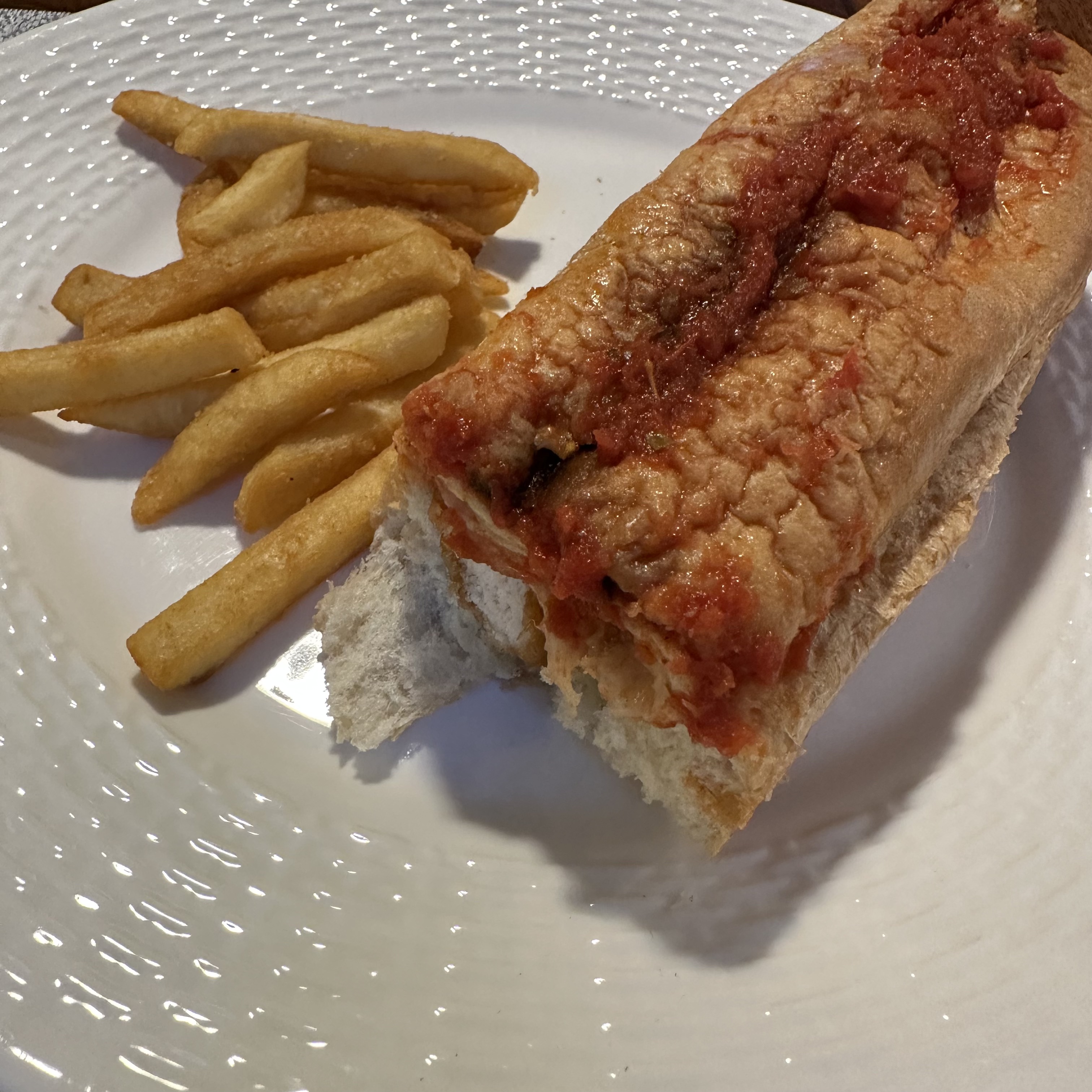 That chicken parm I had on Tuesday was really disappointing so I got one from DeNo’s today. As you know by now, I try not to eat DeNo’s twice in a week, but now that they have seating again, it’s likely I will. The chicken parm was delicious and I got some ruffles and a Fanta to go with it.