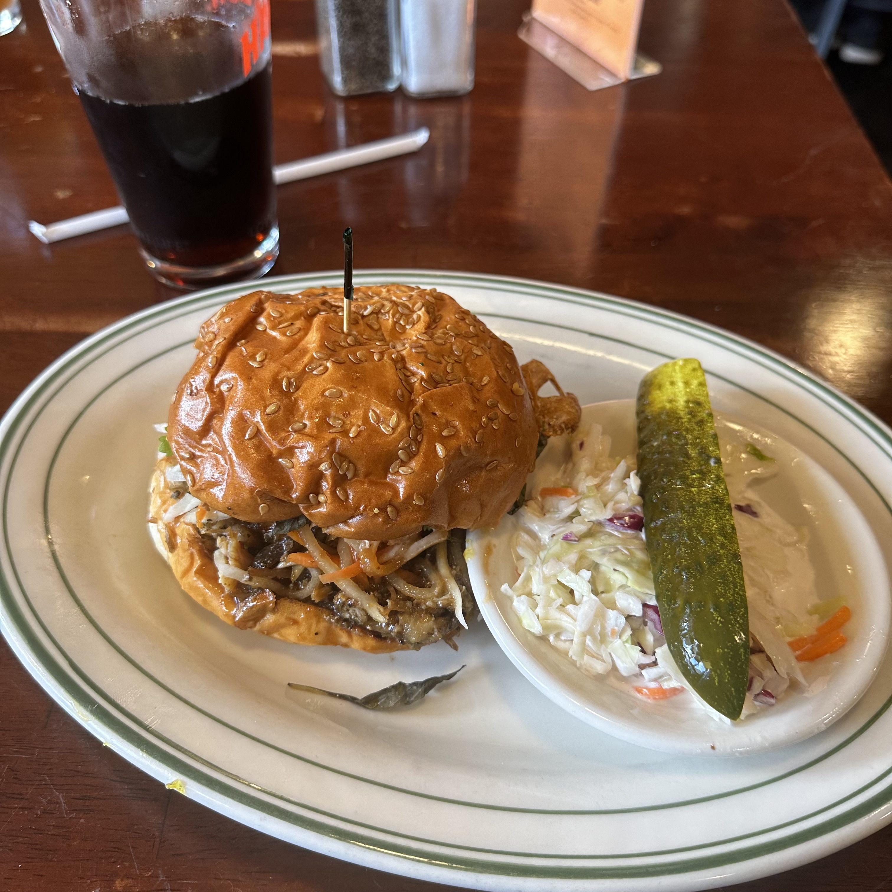 Well Monday, I went back, and it is a shame I went so long without eating there because I really enjoyed my sandwich. I got the Mr. Miyagi (love the name) which is Sweet chile ginger hoisin glazed pulled pork, Thai basil, cilantro, English cucumber, pickled daikon radish, carrots, fried egg and sesame sriracha aioli on a grilled sesame brioche roll. It was excellent.