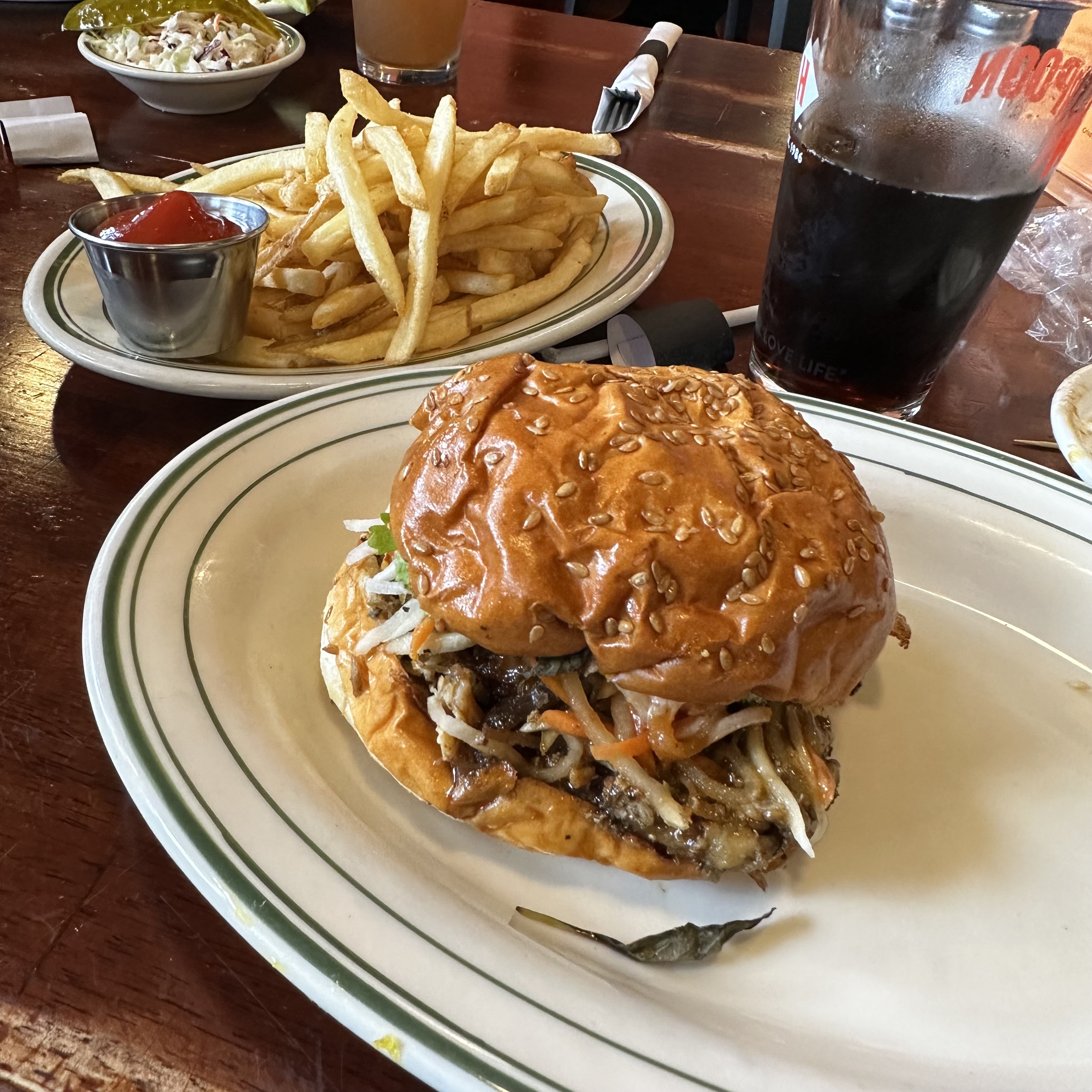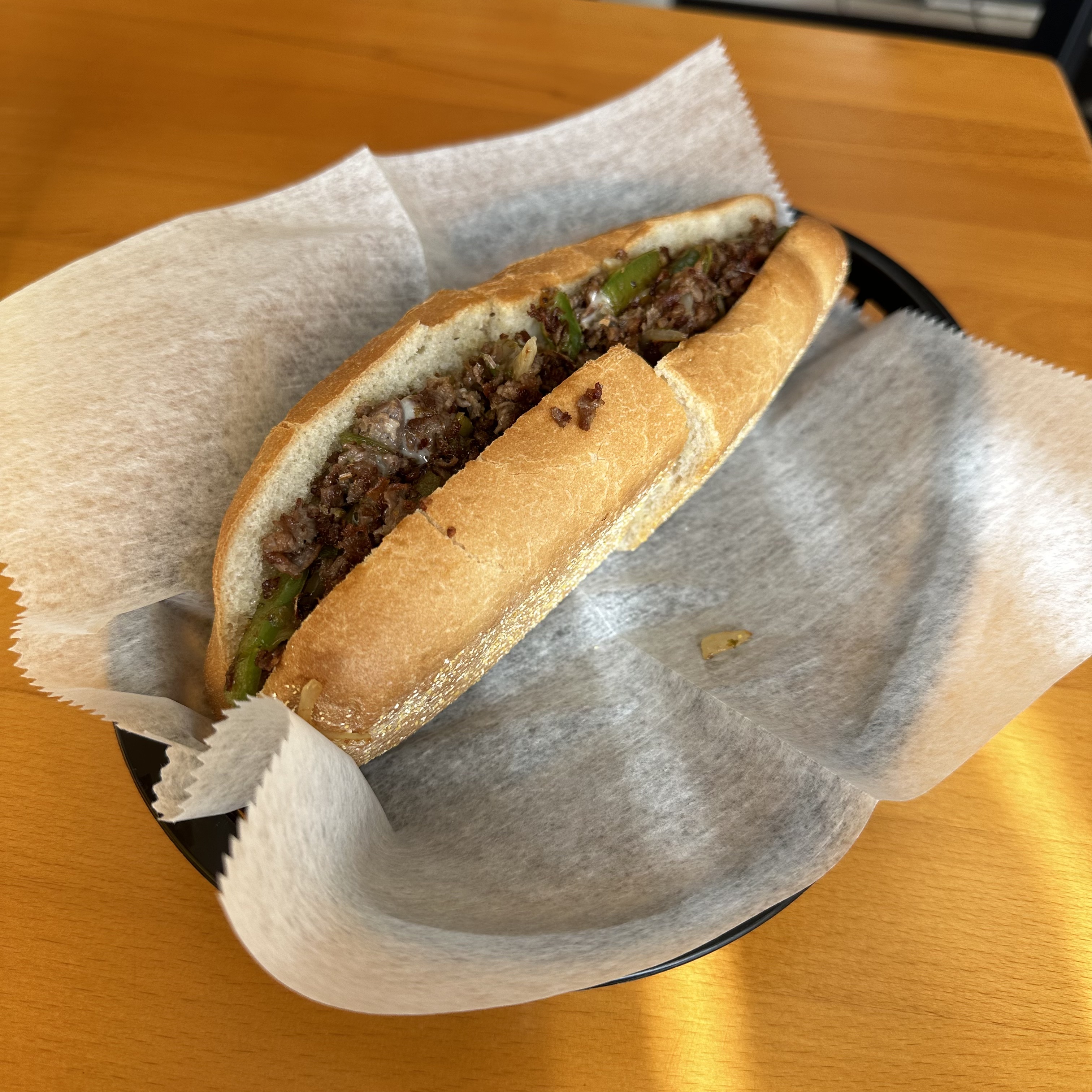 Kelly had suggested yesterday that we have lunch at All Star Sandwich Bar, so that’s what we did. I hadn’t been in years, and it looks about the same with the addition of a table for all the Uber Eats drivers to pick up their deliveries from. I had the Mr. Miyagi which was very good and we all shared an order of fries. Lunch was late so for “dinner” I had a cup of maple tea and a leftover cider donut heated up in the microwave.