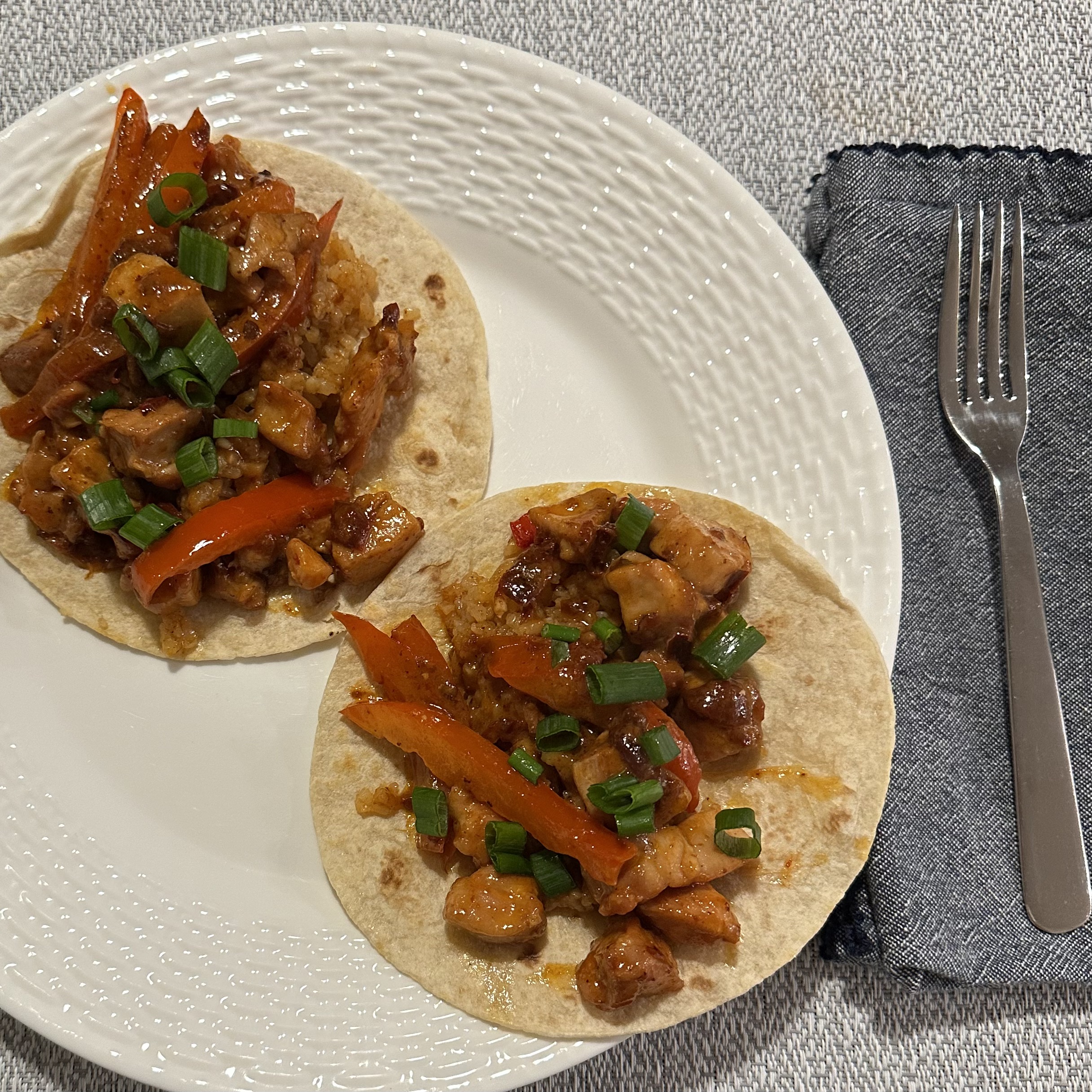 Well I couldn’t do any more carnitas today. Three days in a row is just too much. But I still made tacos because I have a ton of tortillas still. I made chicken tacos in a tequila-adobo sauce with red peppers. I also used up more of the rice so slowly we are running through all the food from Sunday.