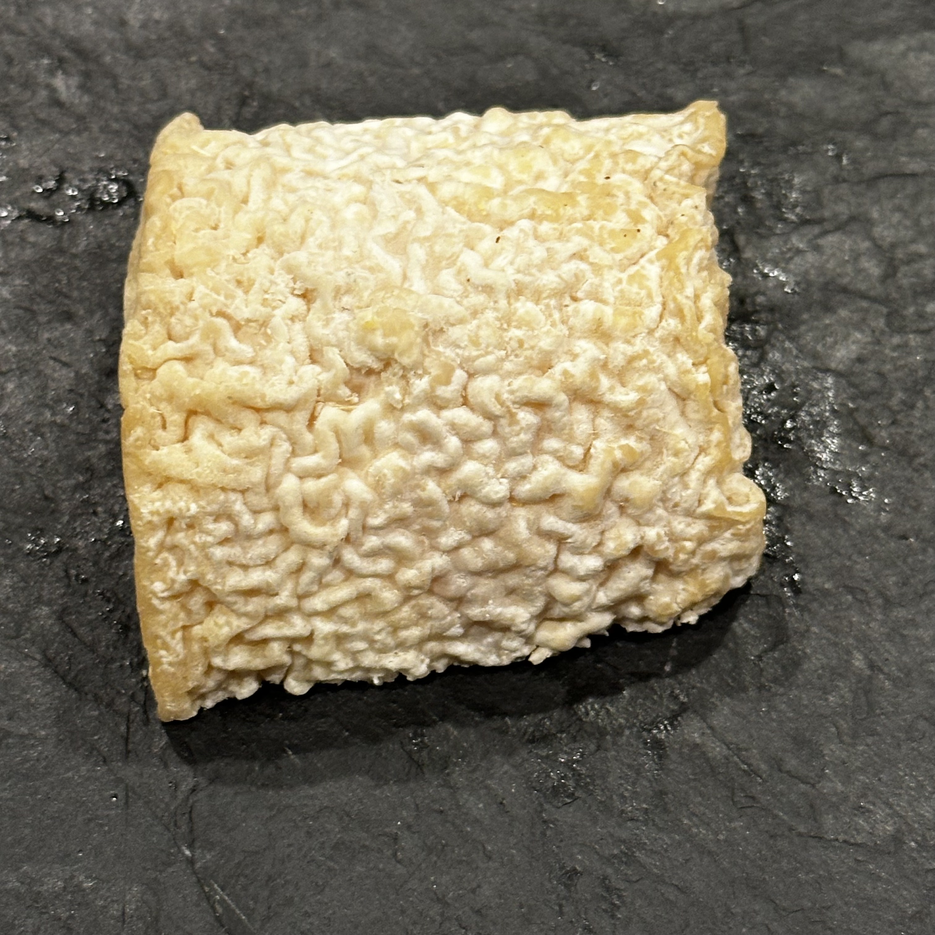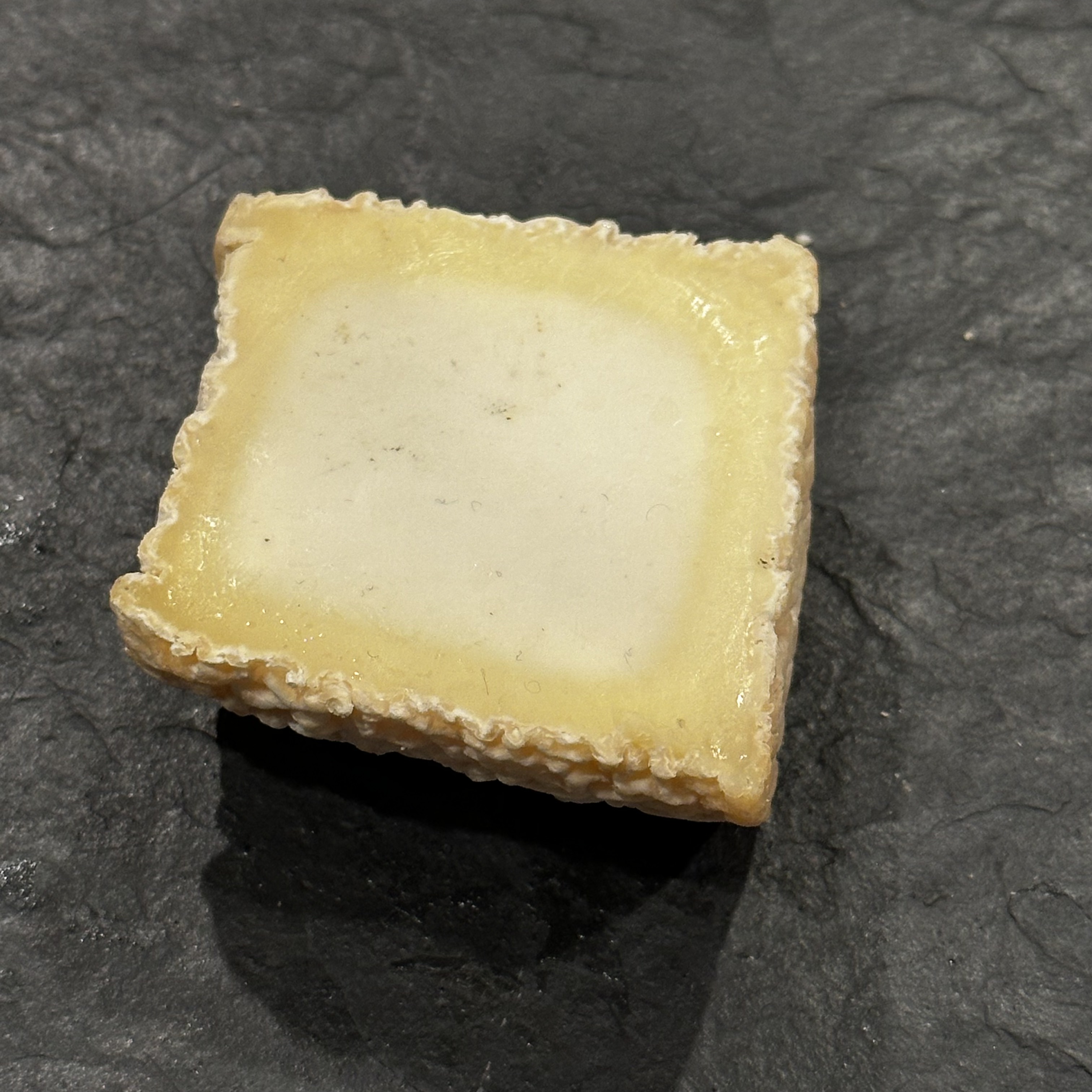 Chabichou has an edible, wrinkled rind. Cutting into it reveals a bright, white center surrounded by a creamy yellow edge. The taste is rich but tangy and goes nicely with fig jam or a slice of prosciutto. It is a wonderful addition to a cheese plate, a big step up from most goat cheese.