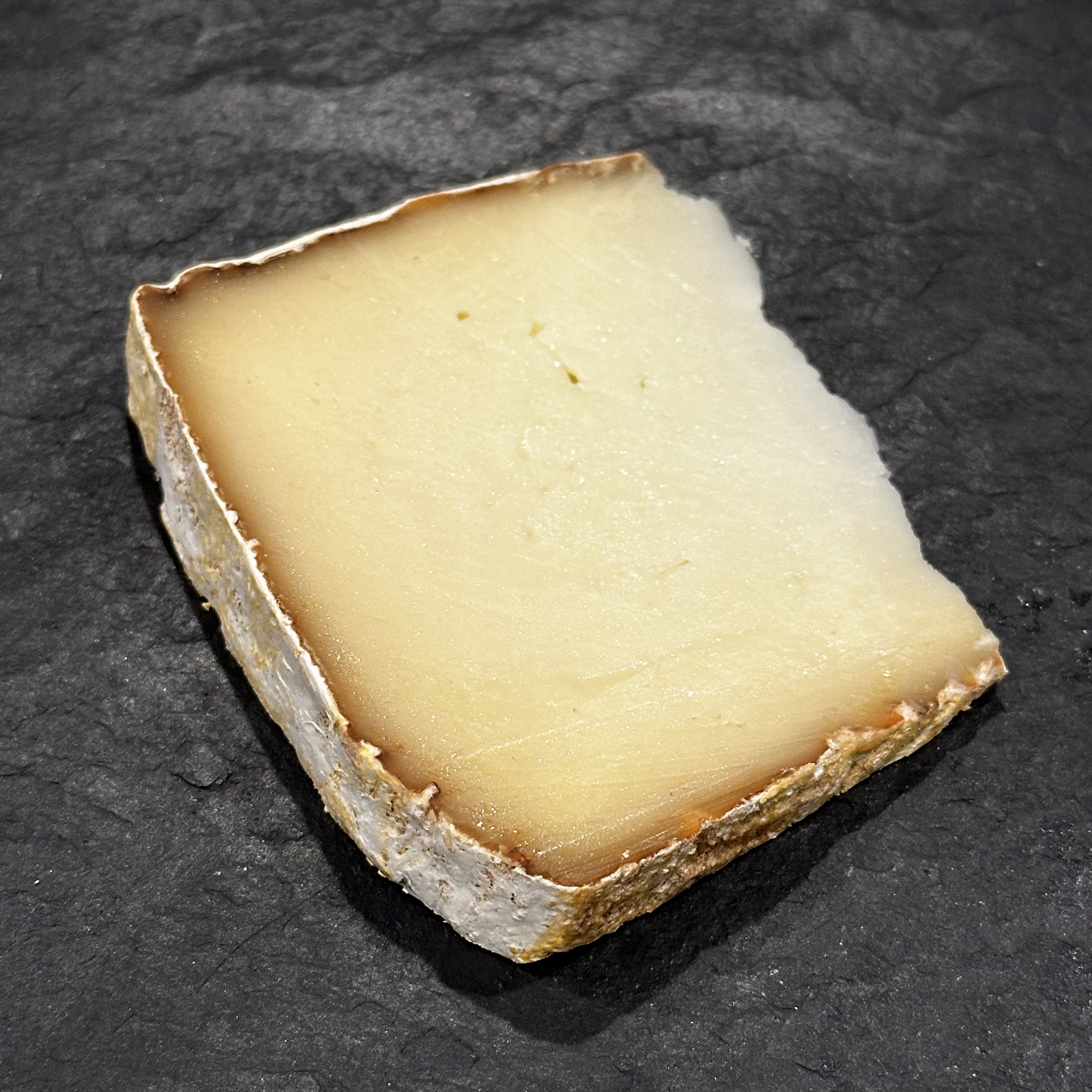 This is an excellent Tomme style cheese with a strong flavor profile. It is aged a minimum of five months, usually six to nine and the result is a cheese that is nutty with salty, grassy notes. The rind, which is edible, is more pungent and tangy.