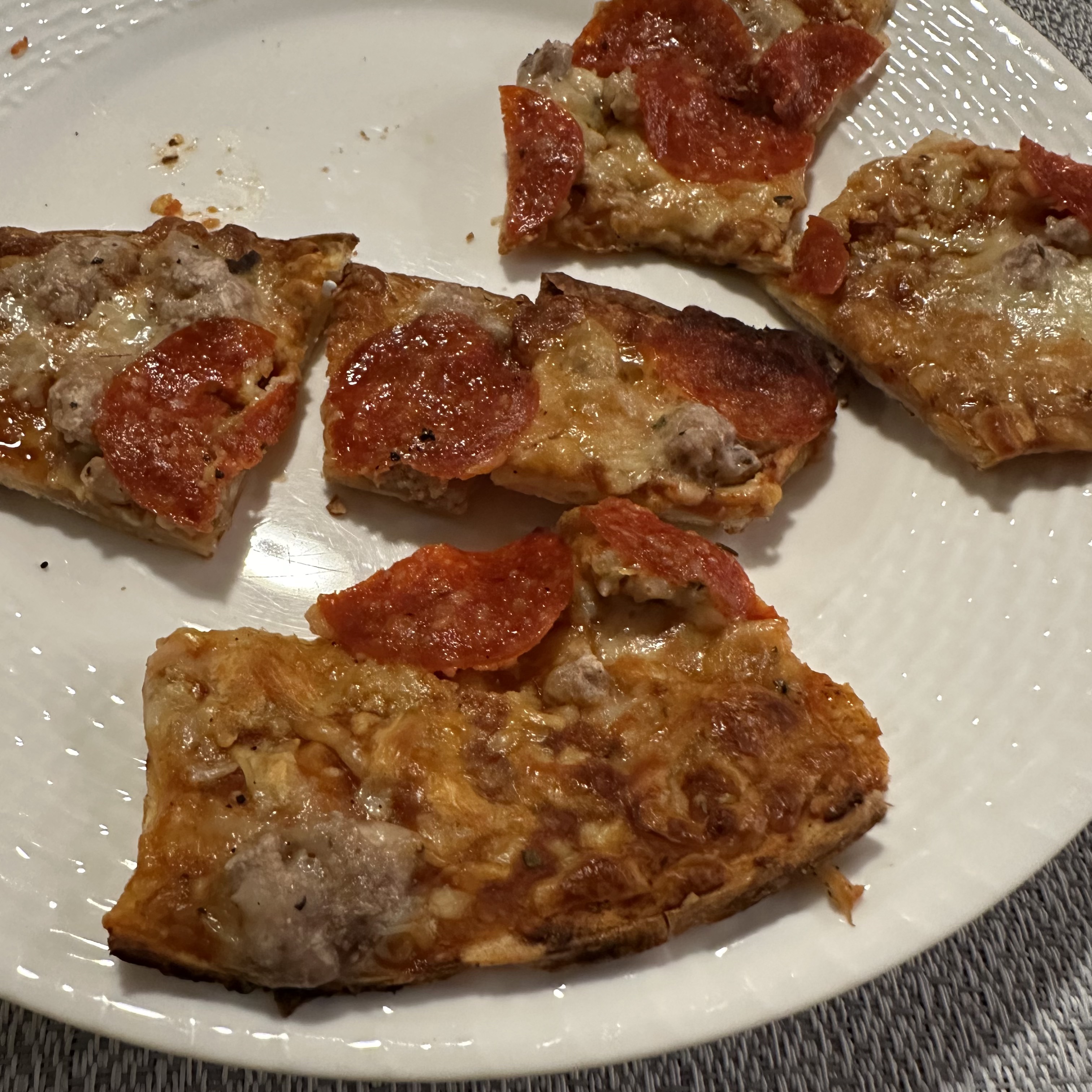 So I know I’m going to write less, but my first day of the new year was eventful. I started the year with bacon and eggs, along with a dinner roll that I slathered with raspberry preserves. After that, I made one of my frozen Imo’s pizzas. Sadly it was shattered while frozen, but I put it together enough to cook it. Really the only issue was it was so badly broken I couldn’t quite cut it into squares.