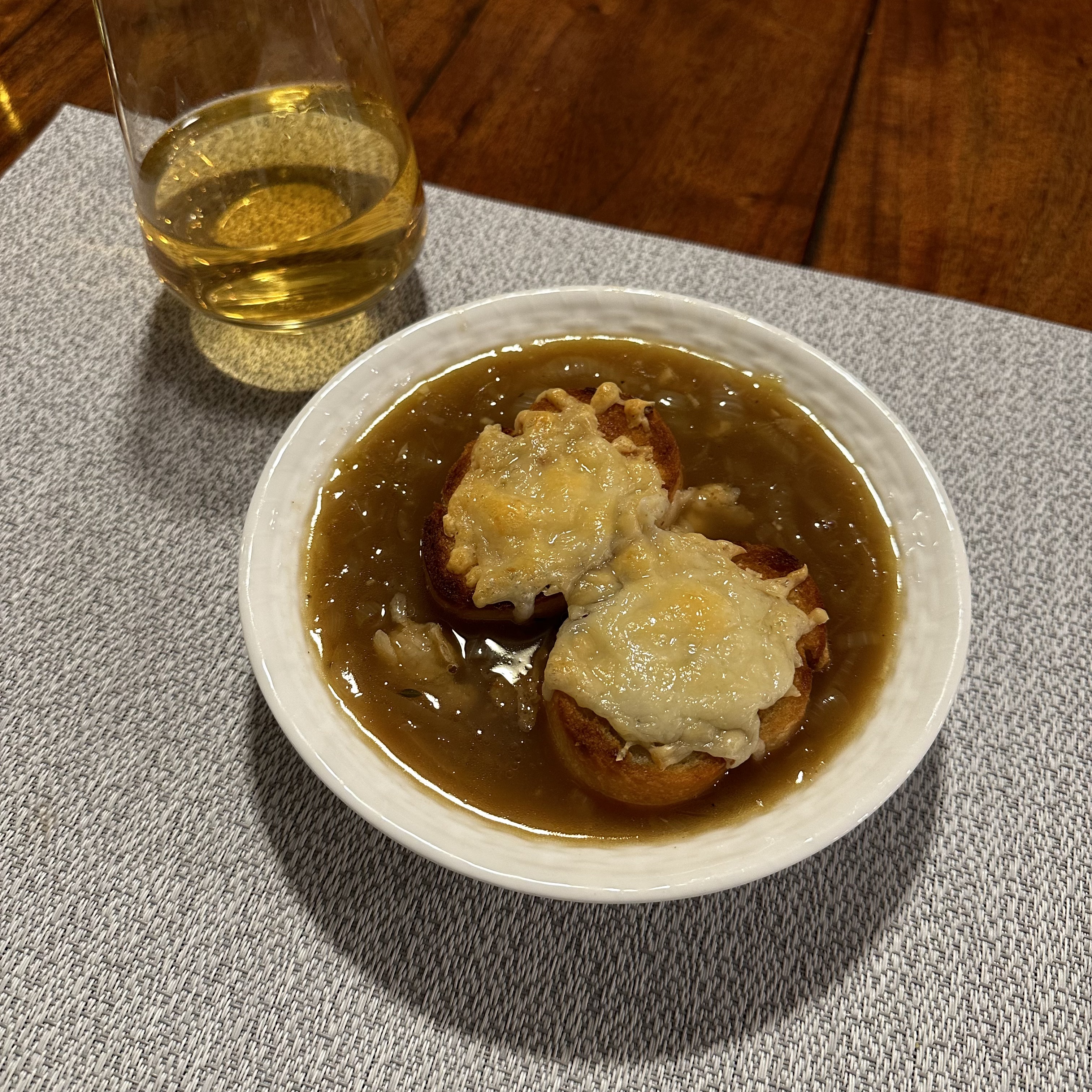 I had leftover beef broth and I didn’t know what to do with it. I decided I would try to make French onion soup. It turned out pretty good for a first try. I cooked the onions for two hours and then another hour with wine and then beef stock. I topped it with toasted baguette and some shredded Le Secret de Compostelle. I will keep practicing this one and hopefully share the recipe soon.