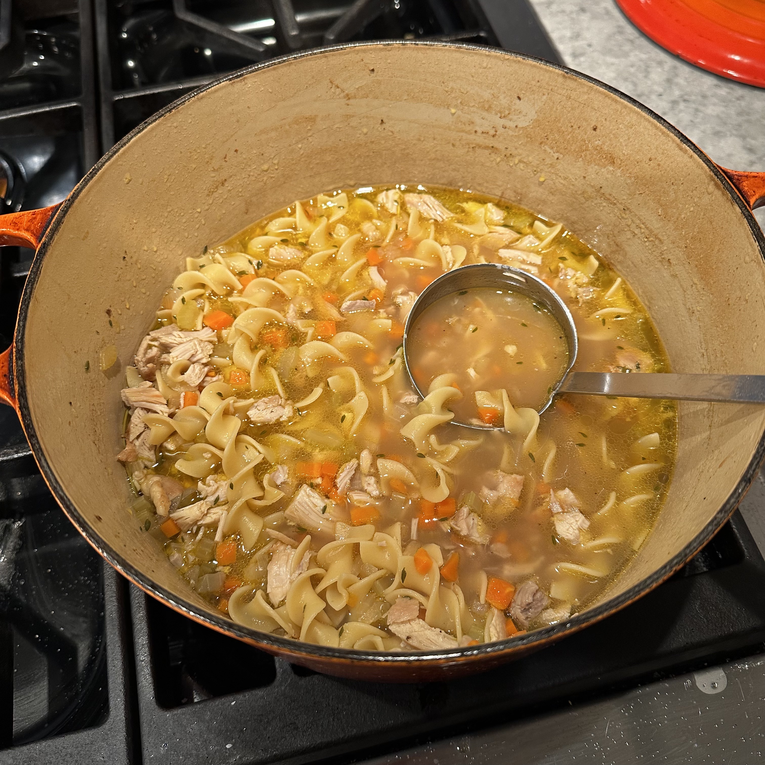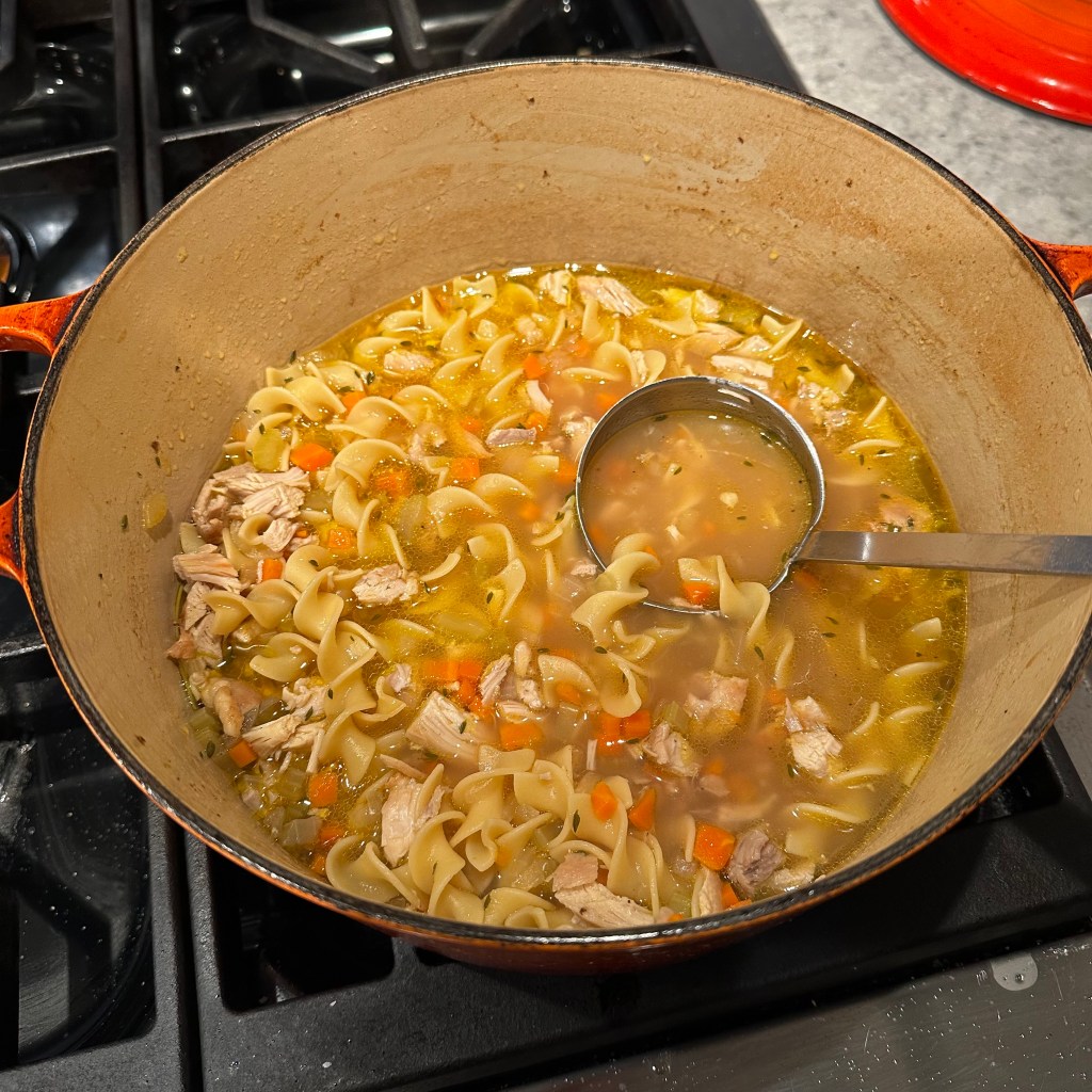 Kelly hasn’t been feeling good so I made her some chicken noodle soup tonight. It turned out pretty good.