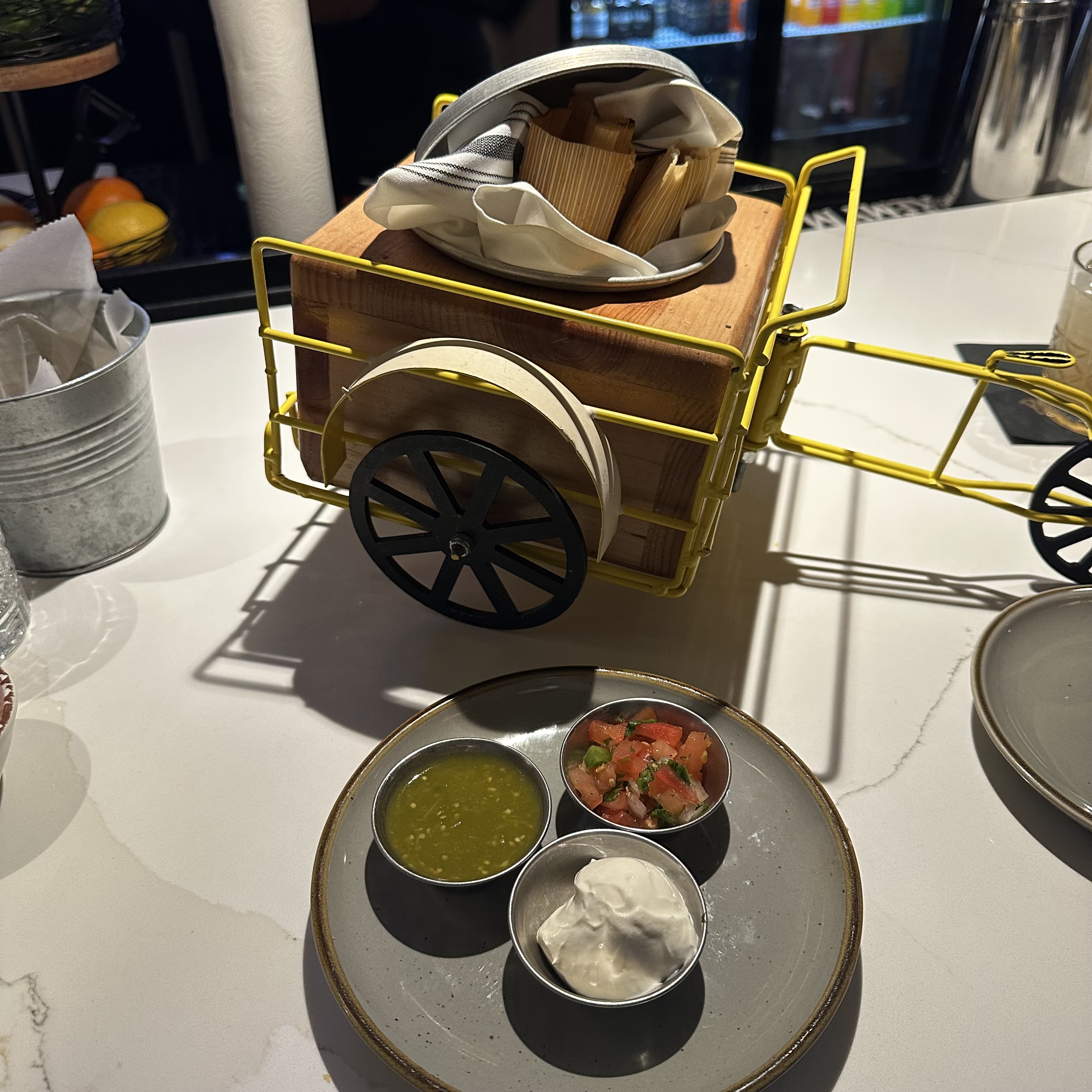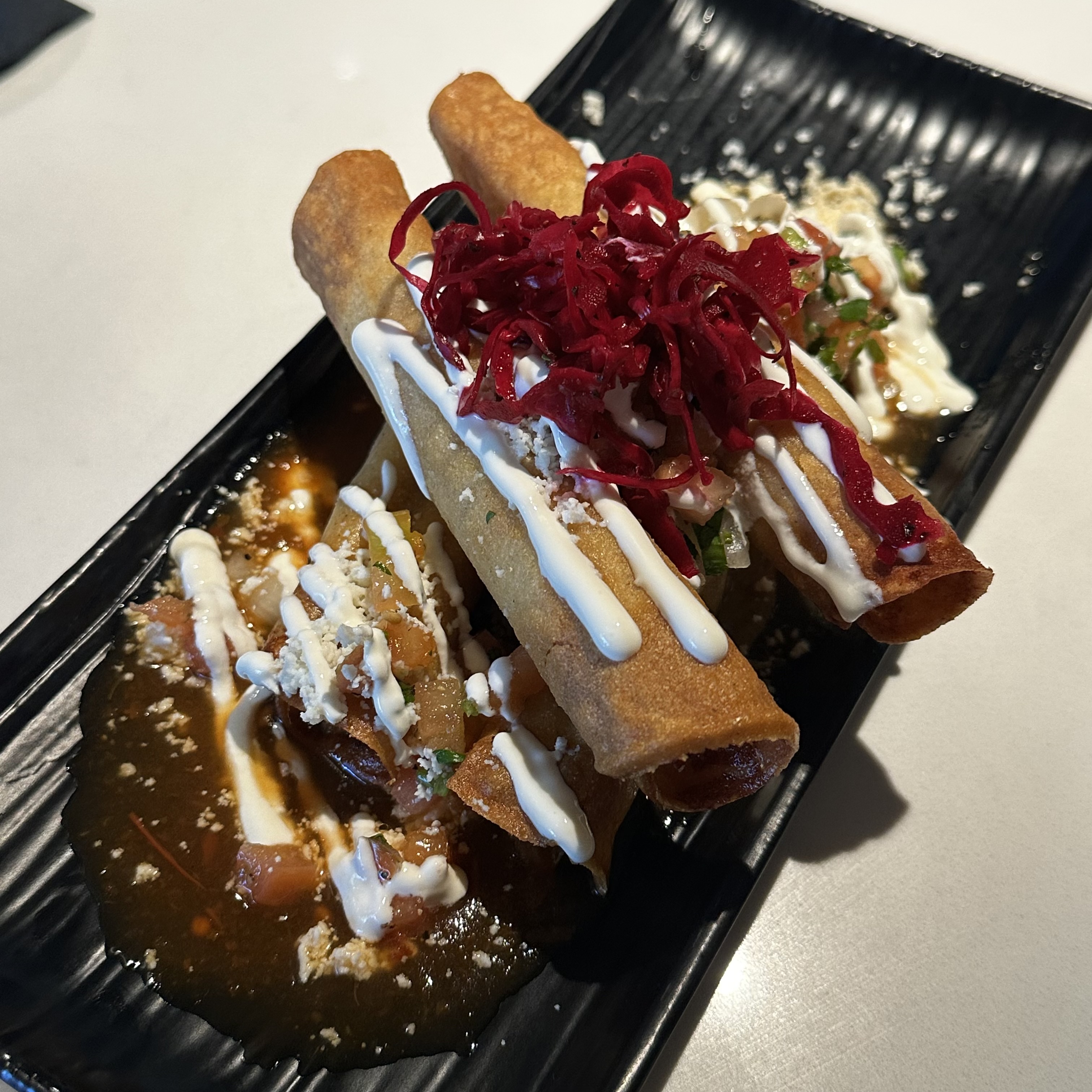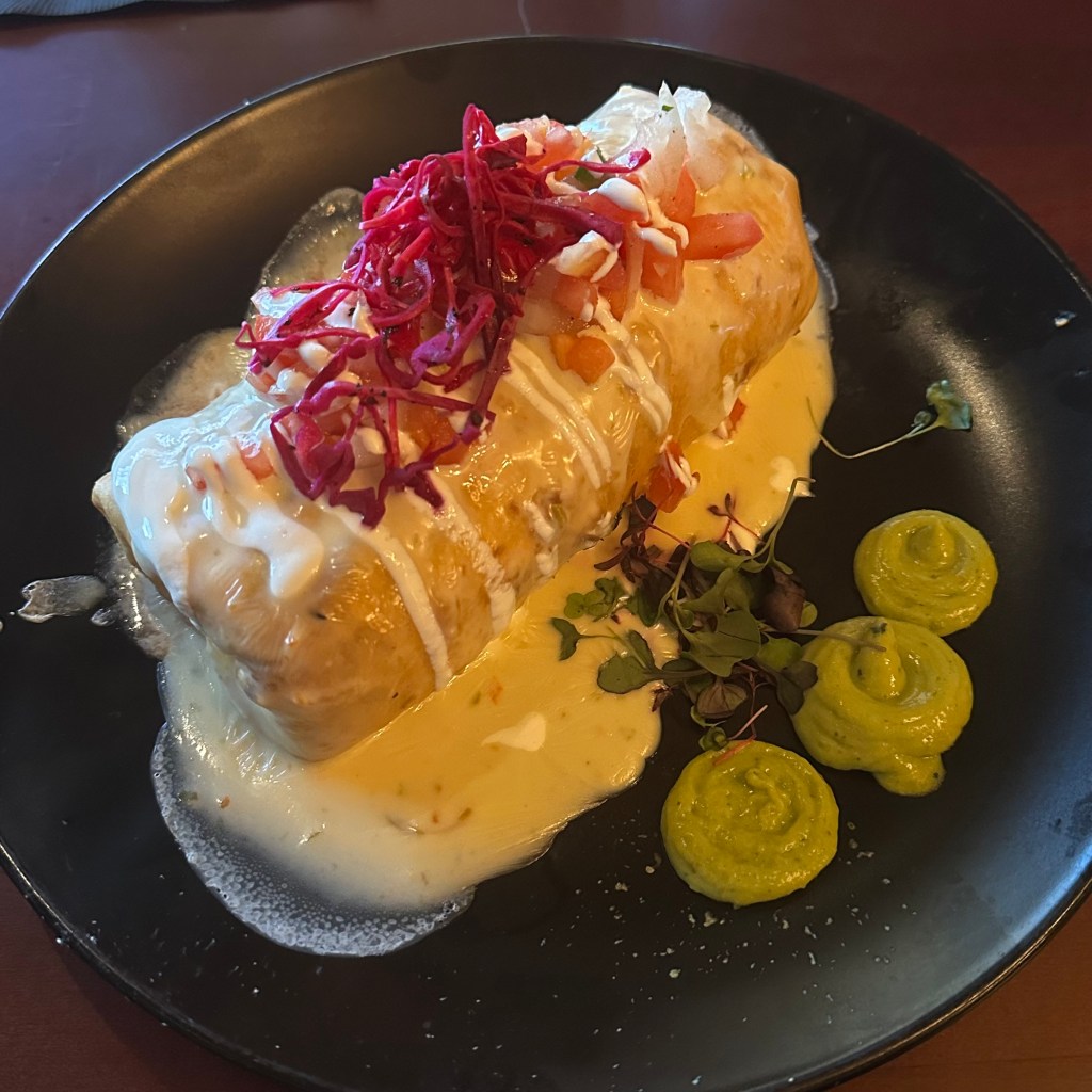 - Highlights from the upscale Mexican menu include carnitas tacos, enmoladas, and tres leches