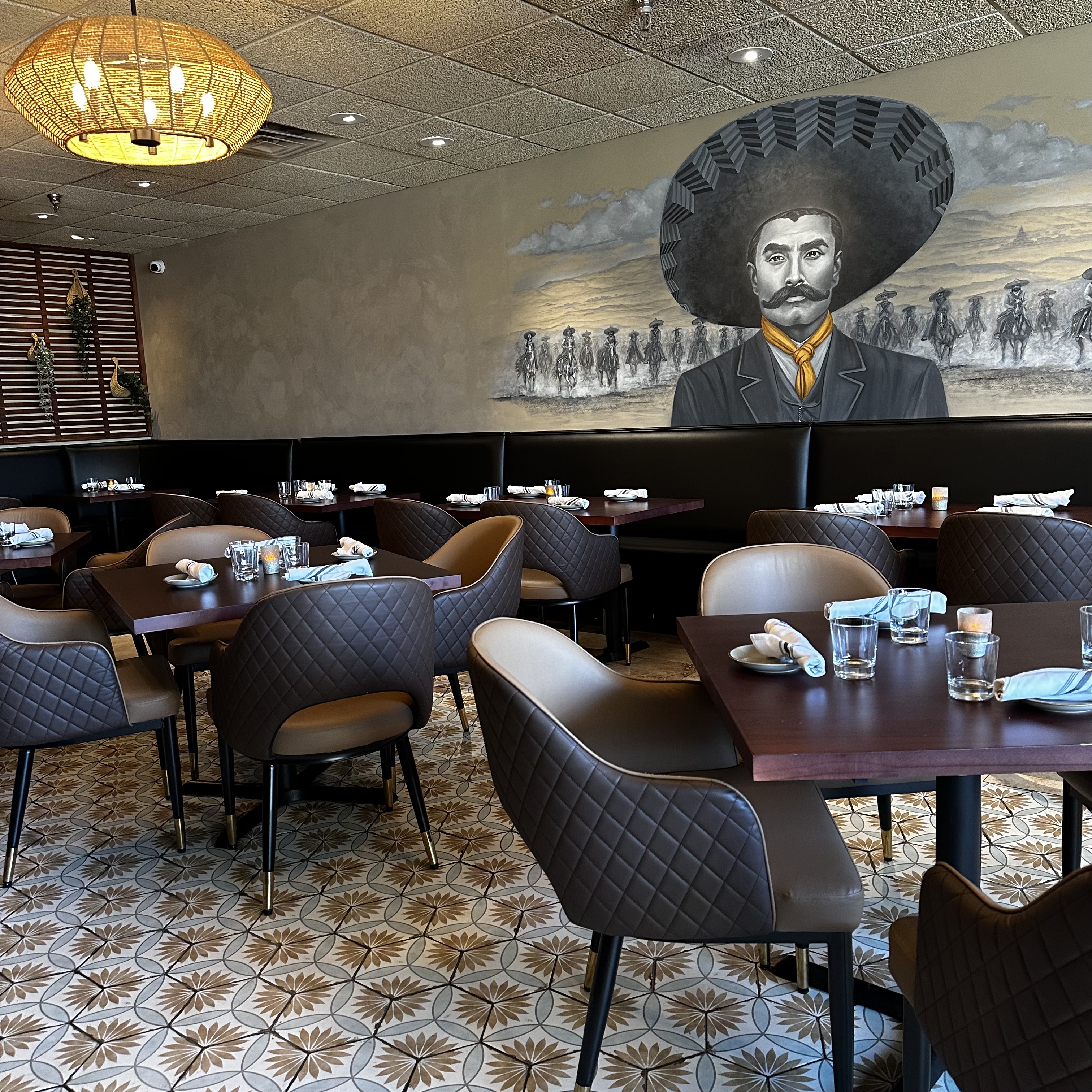 With the addition of the Concord location, Bandoleros took a step up. The dining experience is more upscale than Devens. The room features a beautiful tile floor, leather seating, and dark wood tables. Looking out over it all is a mural of Emiliano Zapata, a leader of the Mexican Revolution of the early 20th Century.
