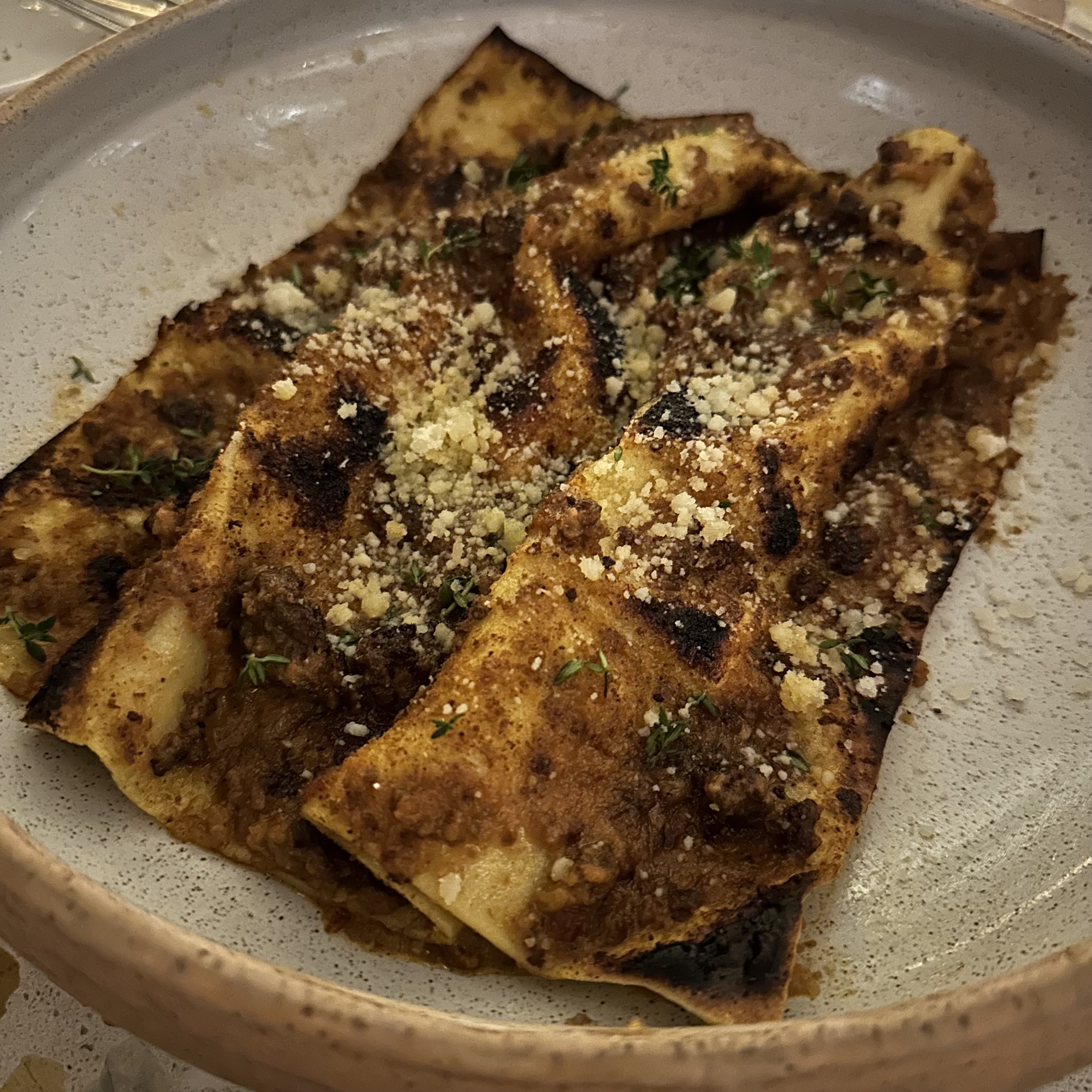 Entrees are mostly pastas, but also offered is a seafood risotto and a whole wood-roasted fish. The rotating Lasagna al Forno, is nontraditional. Sheets of pasta are served in a single layer, adding texture and intensifying flavor.