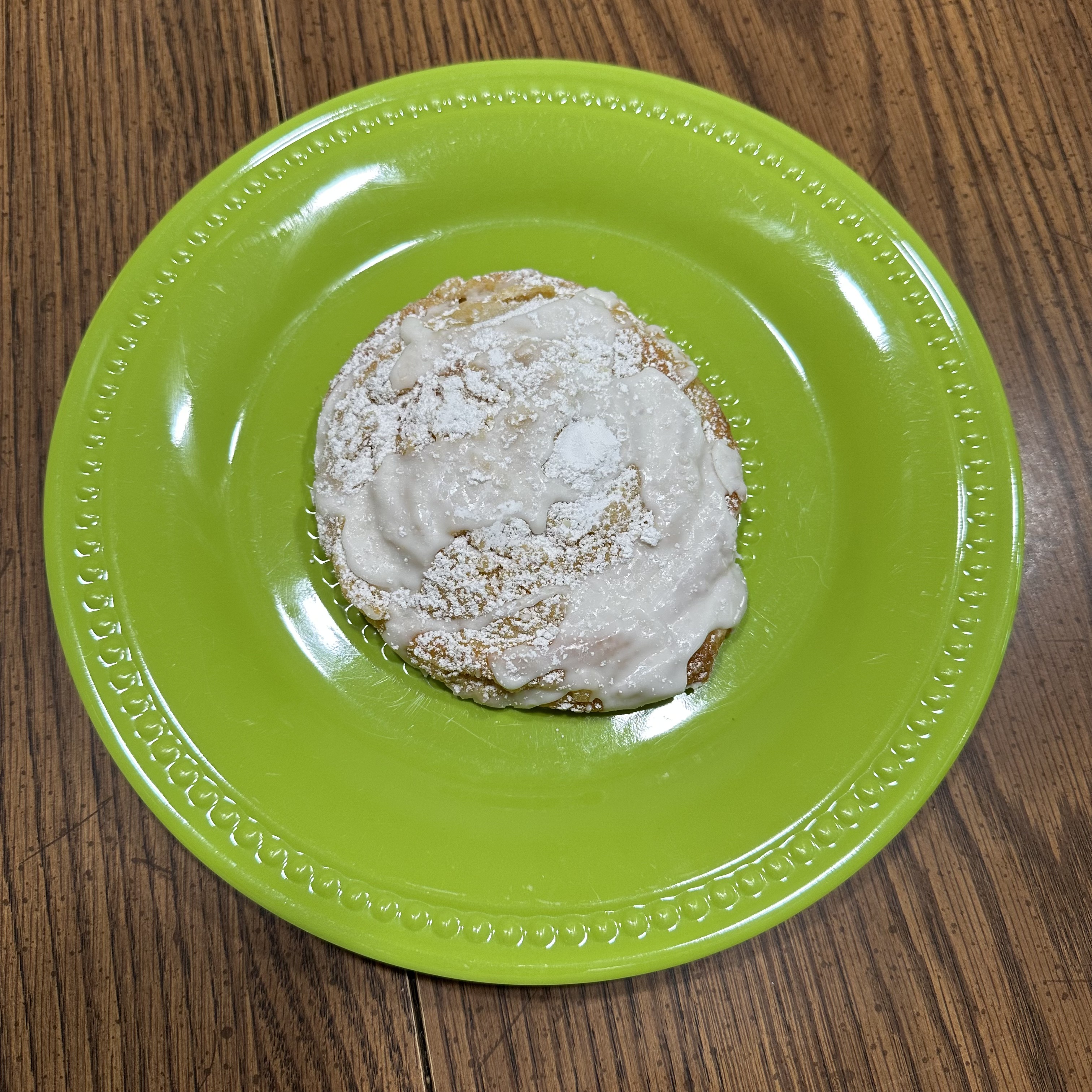 This morning we stopped at Bello’s Bakery. I got Thomas a chocolate donut. For Kelly I got a cheery danish and a cheese one, but I ended up eating most of that. Mom and I got a paradise danish which is a gooey butter danish with glaze and powdered sugar. They said it had nuts, but I couldn’t tell.