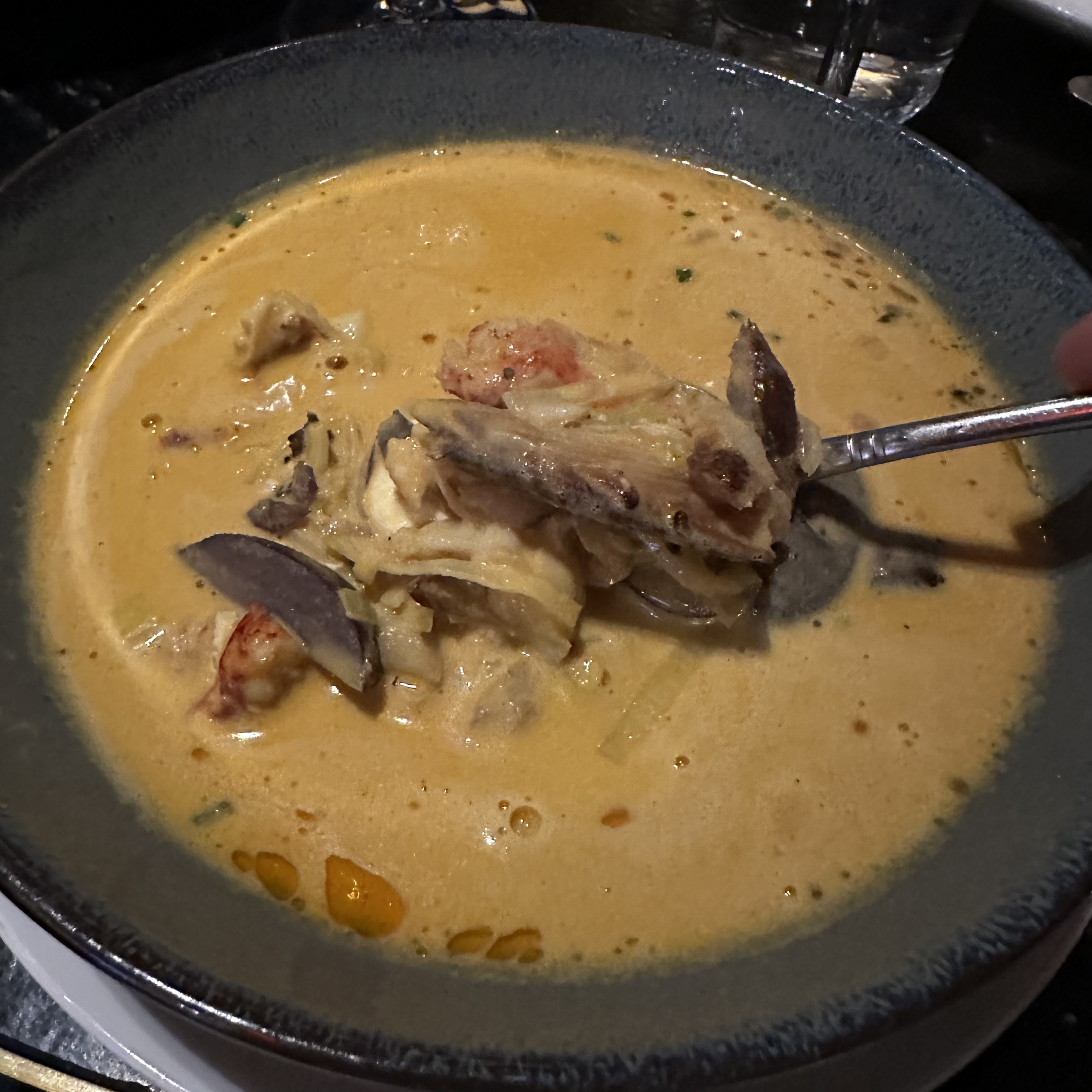 I was at staples to get TSA precheck and noticed a new restaurant had opened next to it. KJ’s Caffe was pretty empty, but I tried their Sandwich of the Month, a hot Italian sausage panini which was pretty good. For dinner, I went to The Bancroft to celebrate Michael’s birthday. I got the Lobster and Smoked Haddock Stew. It was poured tableside from a copper pot. I really liked that, but as most soups at The Bancroft it probably won’t last long on the menu.