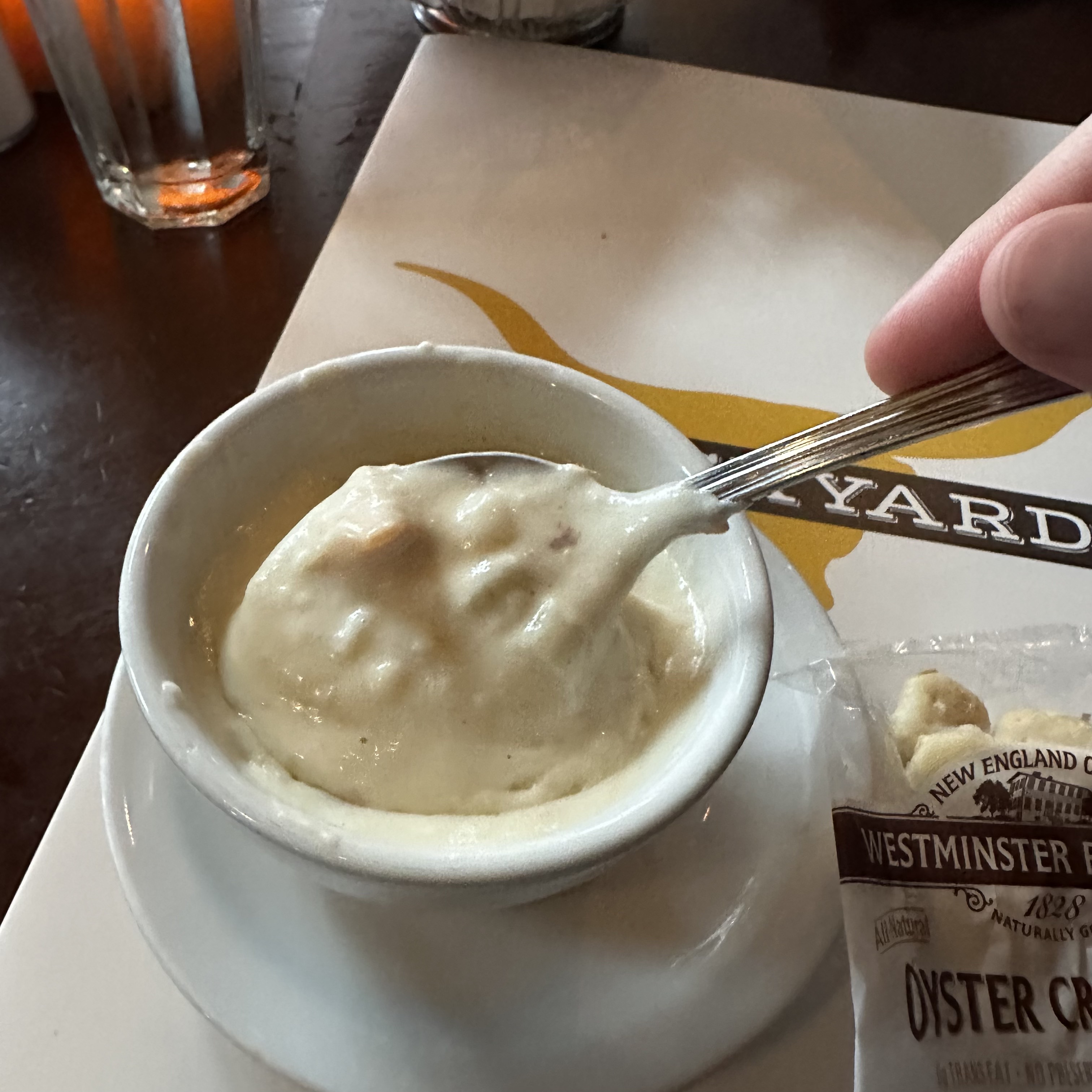 The Stockyard sits on the former location of Brighton Cattle Market. Since 1972, they have been serving up steaks in an unpretentious setting. They are known for having Al Capone’s original bar, but not so much for their clam chowder. Even so, when the chowder quest encounters a chowder, it must be tried.