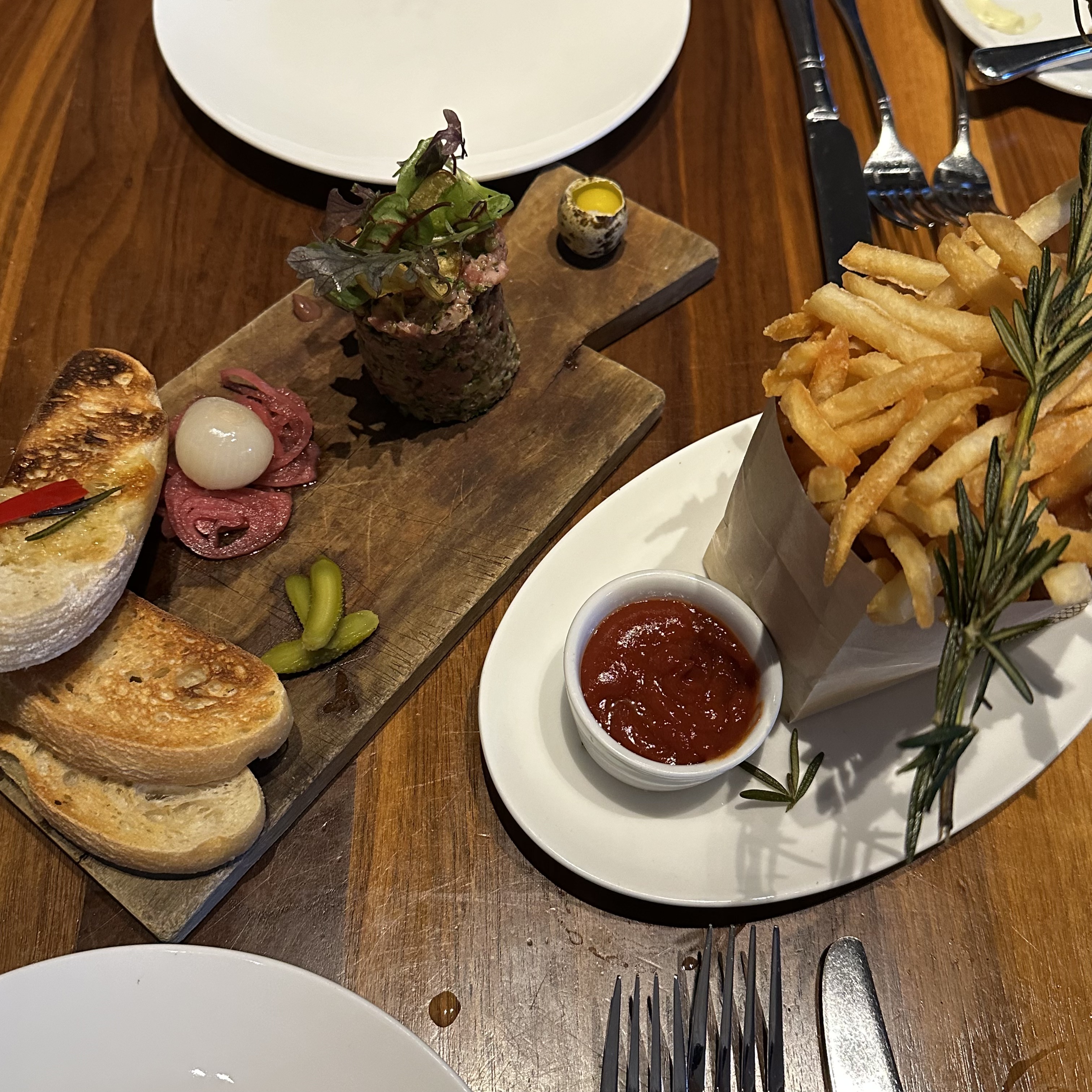 My wife and I hired a babysitter and had dinner out just the two of us. We went to The Bancroft and got some favorites, steak tartare, fries, and shrimp cocktail. We also tried their chowder, but weren’t impressed. We also got the lemon blueberry cake. I loved the lemon curd ice cream, but the cake was a little dry.