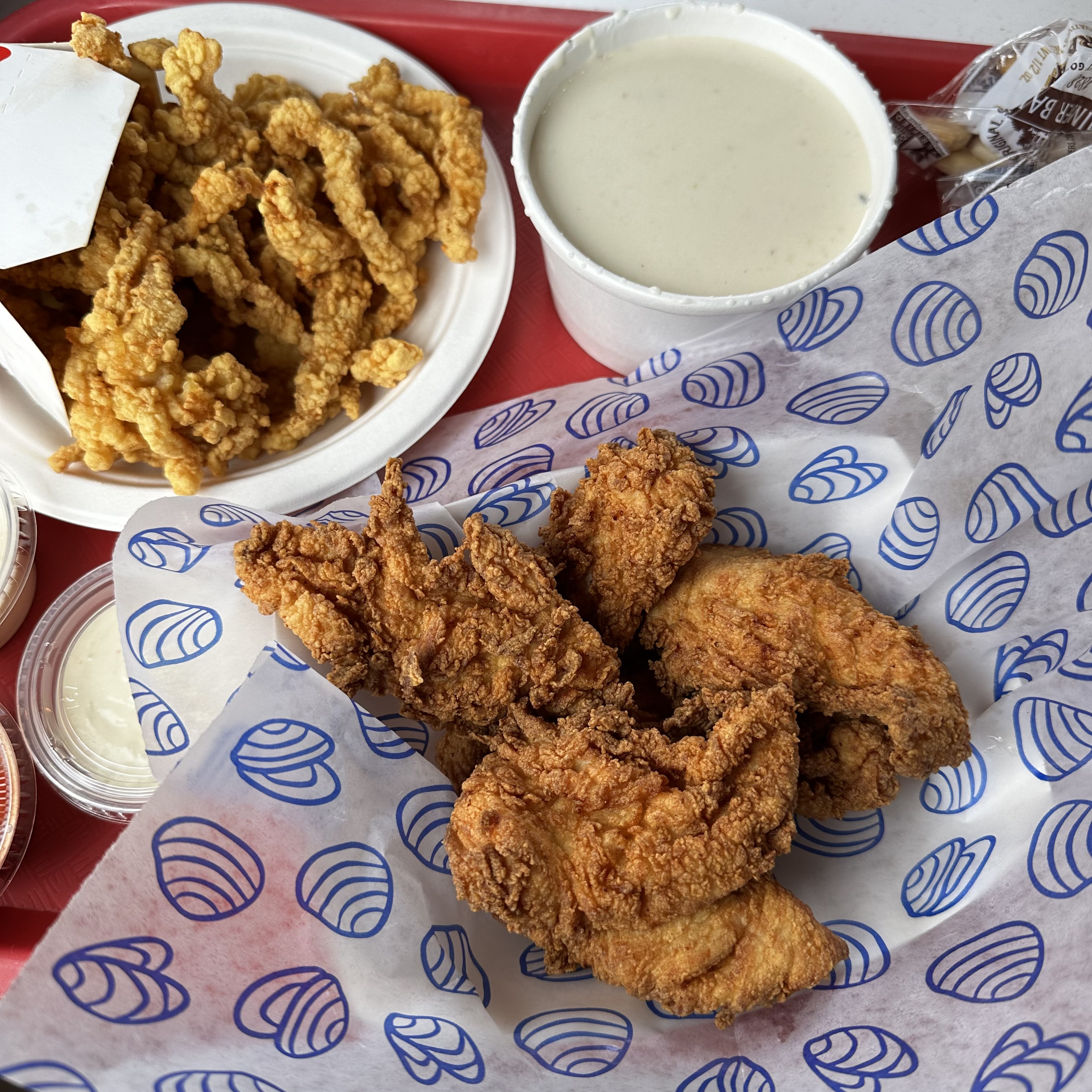 We took a drive up to Maine for the long Memorial Day weekend. Our first stop was The Clam Shack in Kennebunk. I bravely skipped their amazing lobster roll in favor of a cup of chowder, but we also got clam strips and fries. And since once chowder ins’t enough when I’m in Maine, we also got a recommendation to try Cape Pier Chowder House. There we got another cup of chowder and a hot dog with fries.