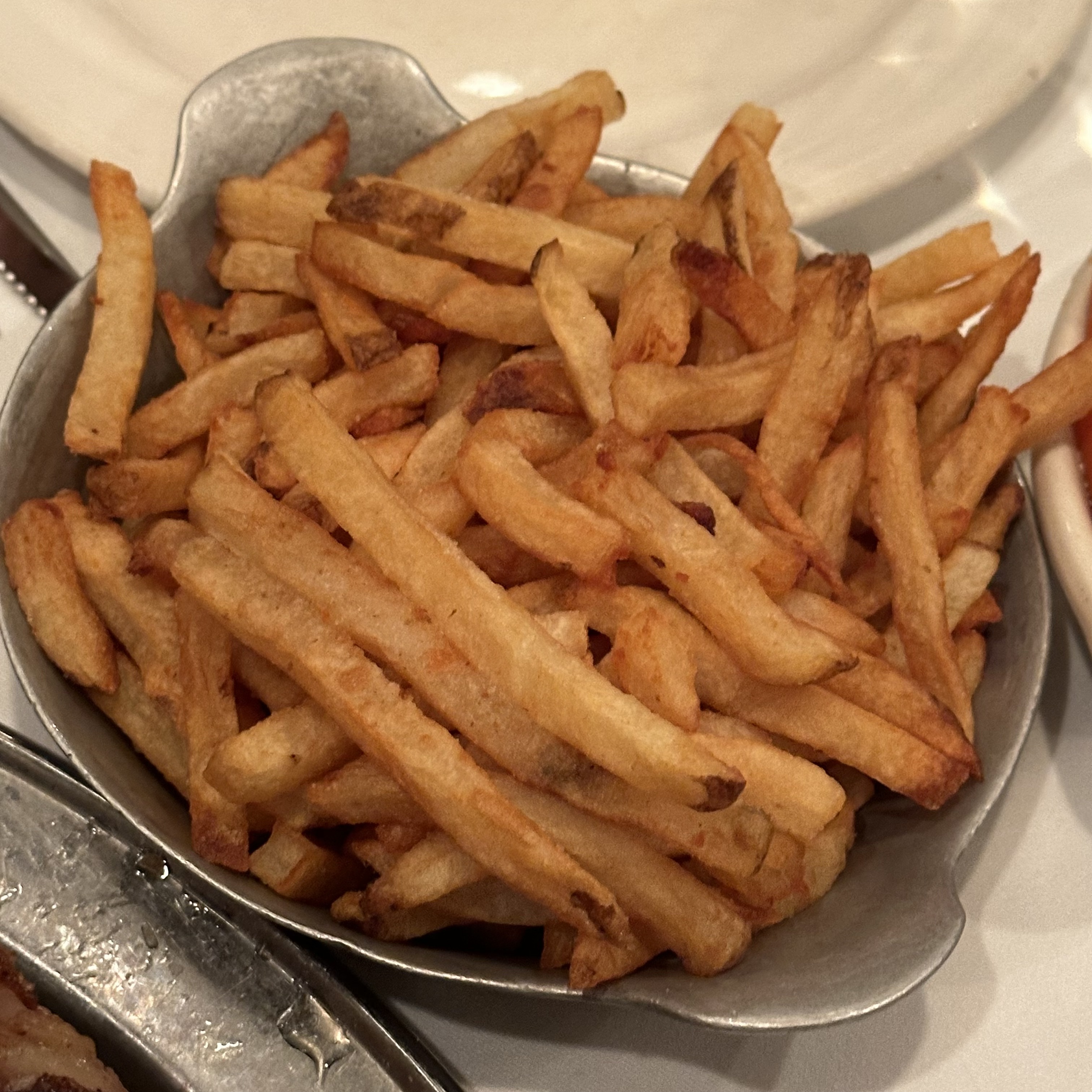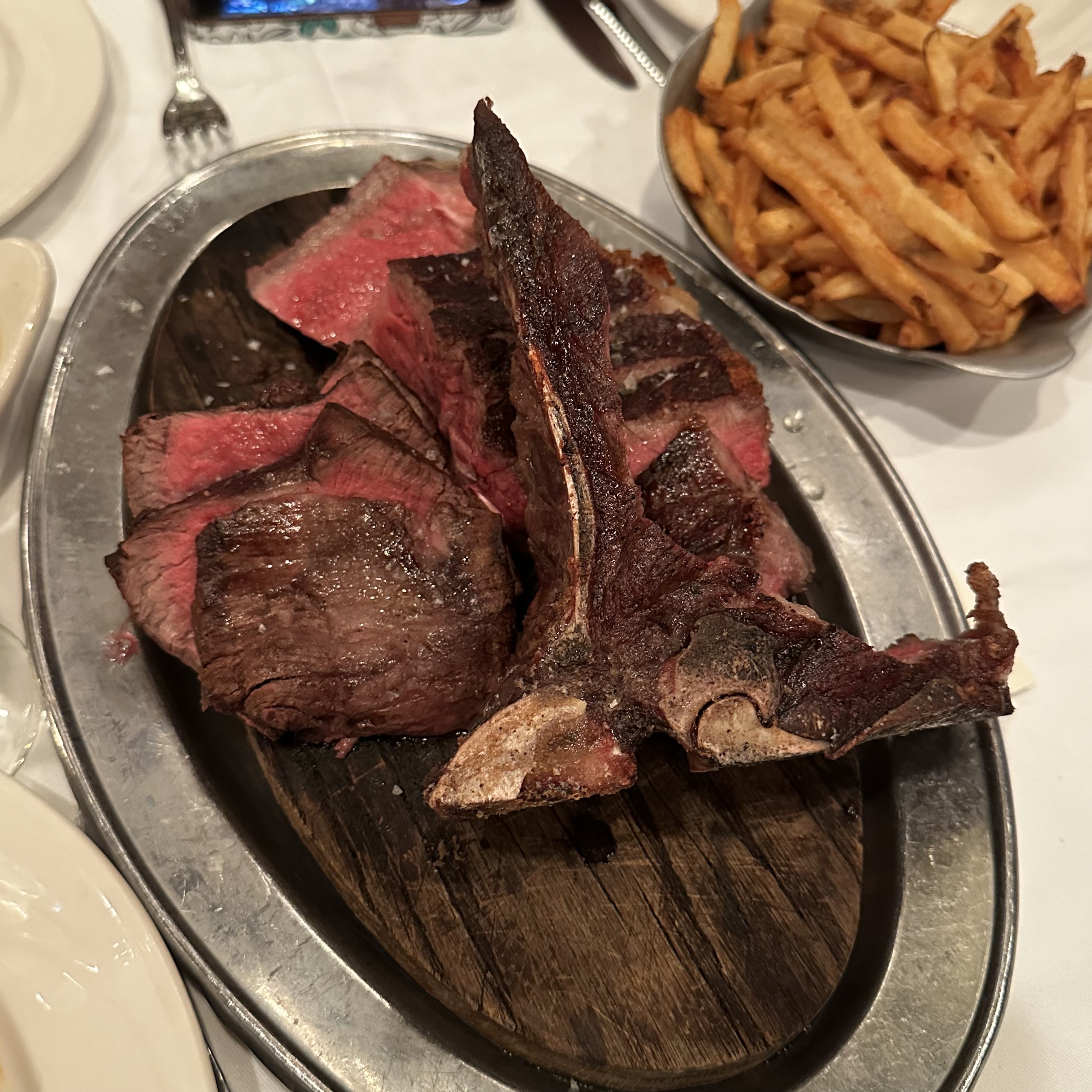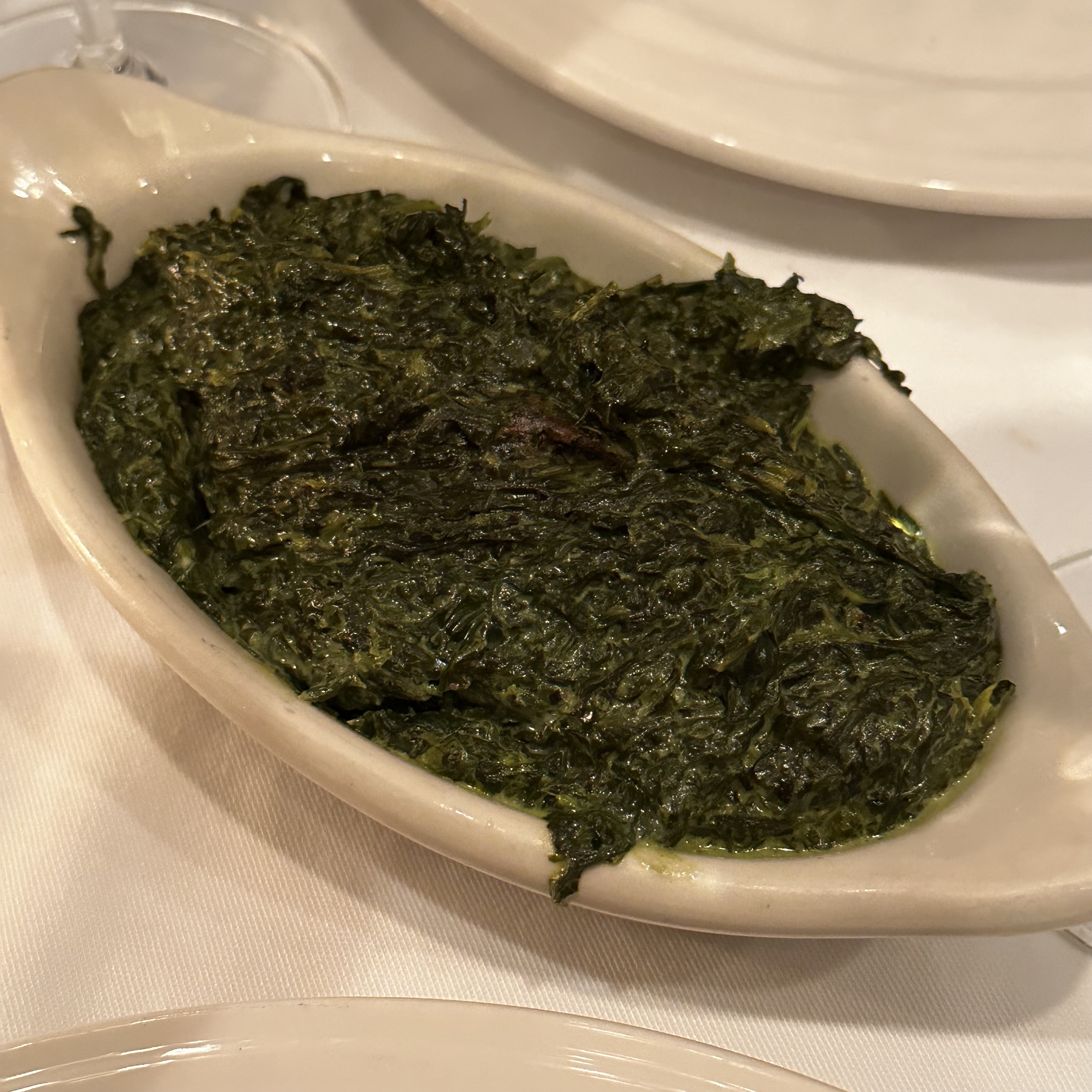 Beyond the pipes, the decor is dark wood and white tablecloths. Like everything else at Keen’s the dining rooms are old school. And that makes sense because Keen’s is the second oldest steakhouse in New York City, though it did close for renovations in the 70’s before reopening as Keen’s Steakhouse. Keen’s service is friendly but of course traditional. When I shared with my wife that I had forgotten to order creamed spinach, a serving quickly appeared compliments of the house.