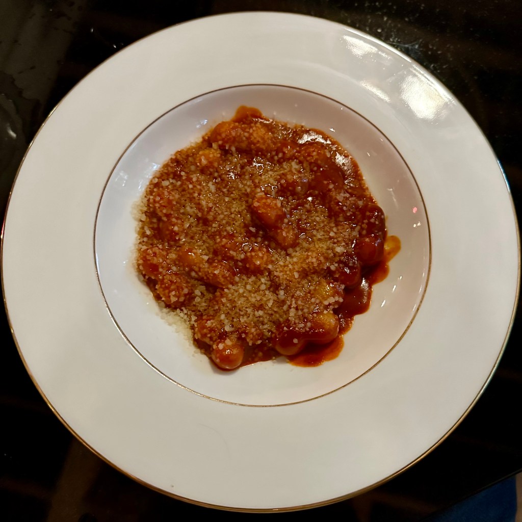 think extra long and extra thin lasagna noodles tossed in a lighter than you would expect tomato & lamb ragu