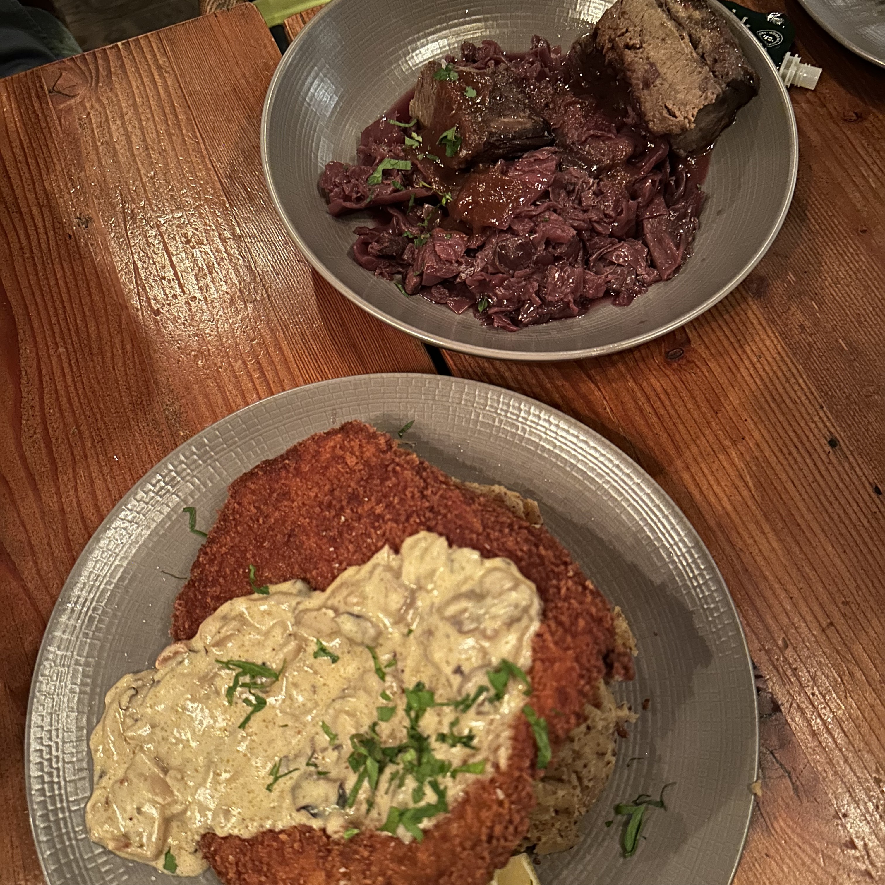 Dinner at BRONWYN: Bretzel, Best Wurst, Pickled Eggs, Sauerbraten, Schnitzel.
