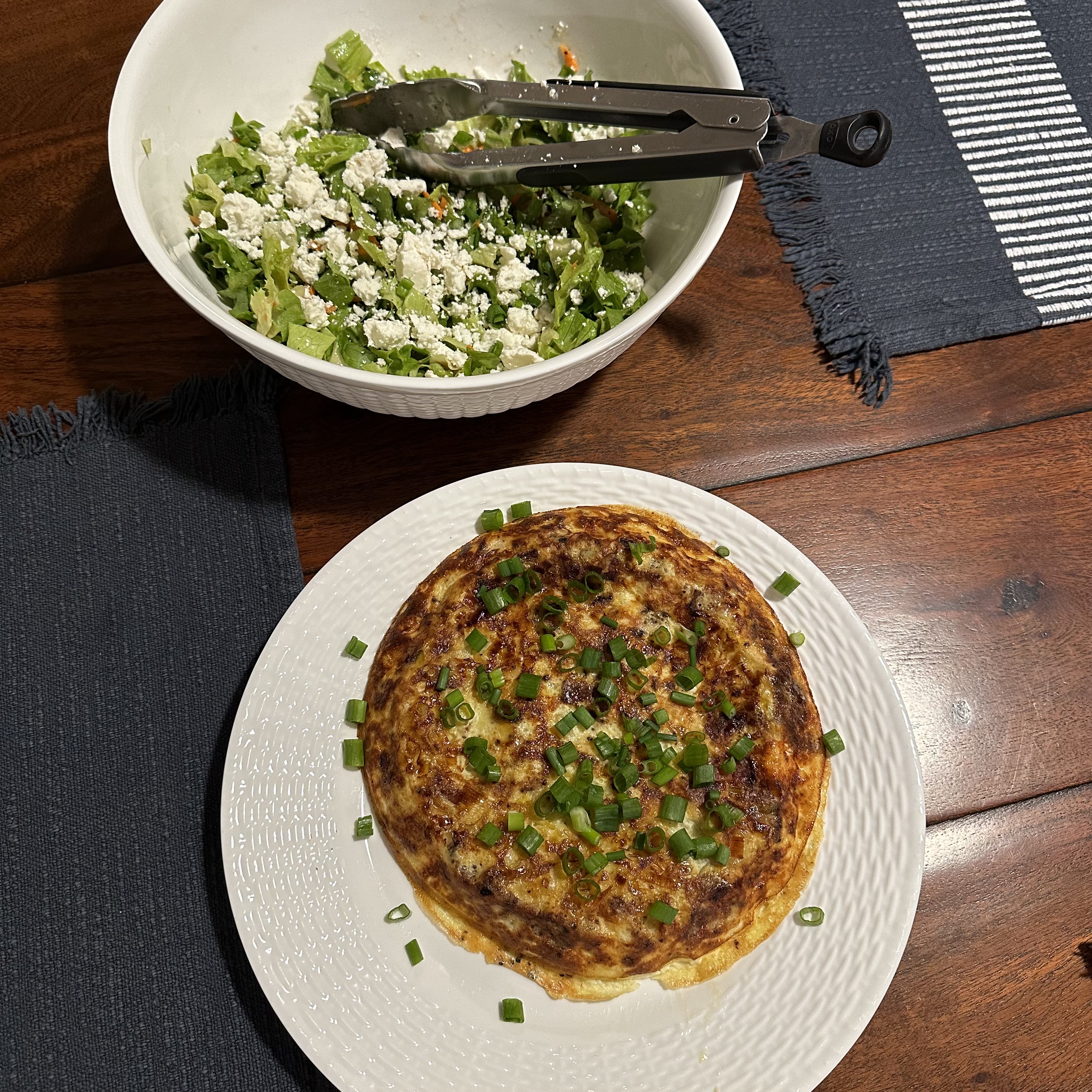 Kelly needed me to make a quiche for her to take to work, so I also made a bacon-leek frittata and a salad for our dinner.