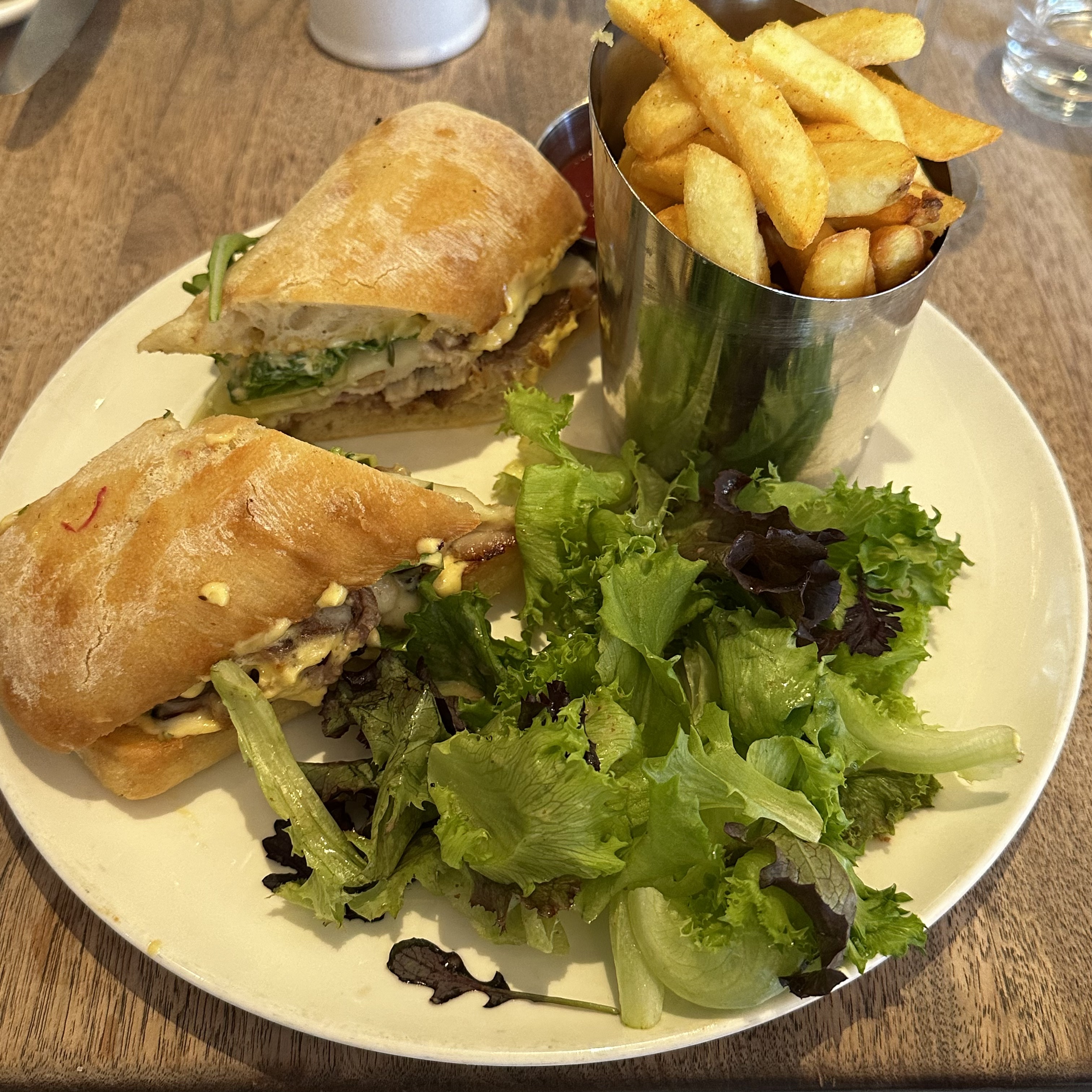 My only meal today was brunch at Woods Hill Table. Kelly and I shared skillet coffee cake and a side of sausage. Then I had the Cubano. All was good, but the service wasn’t great, and the only thing I’d get again would be the sausage.