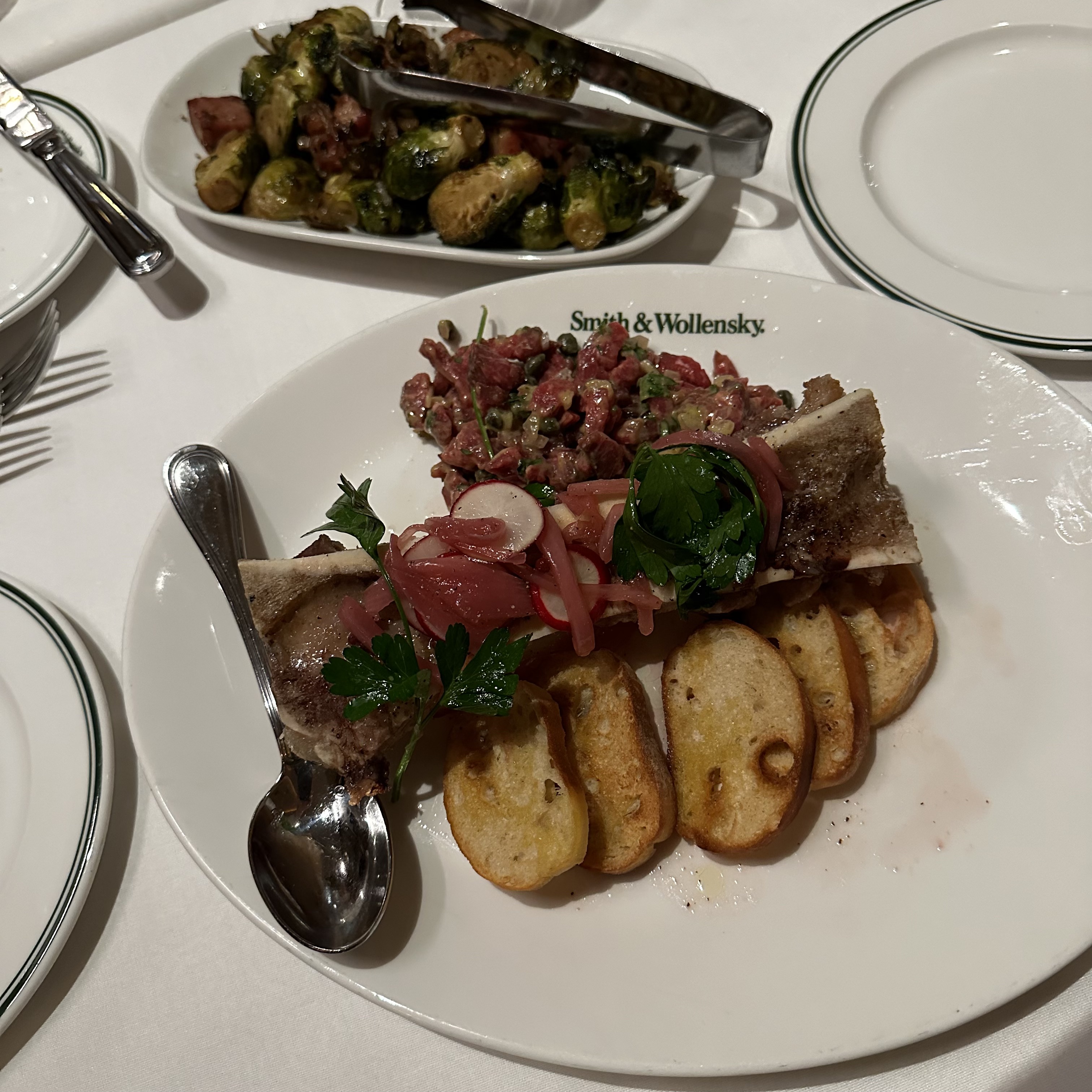 We tried the new Smith & Wollensky in Burlington. The chowder was good but it’s made by Legal Sea Foods so it should be. I’m trying to find out if it’s the exact recipe. We also got the steak tartare with bone marrow which is mixed table side. It’s excellent. On the other hand, the brussels sprouts were awful, never will ttry those again. Also, get the Tennessee Sidecar to drink, delicious.