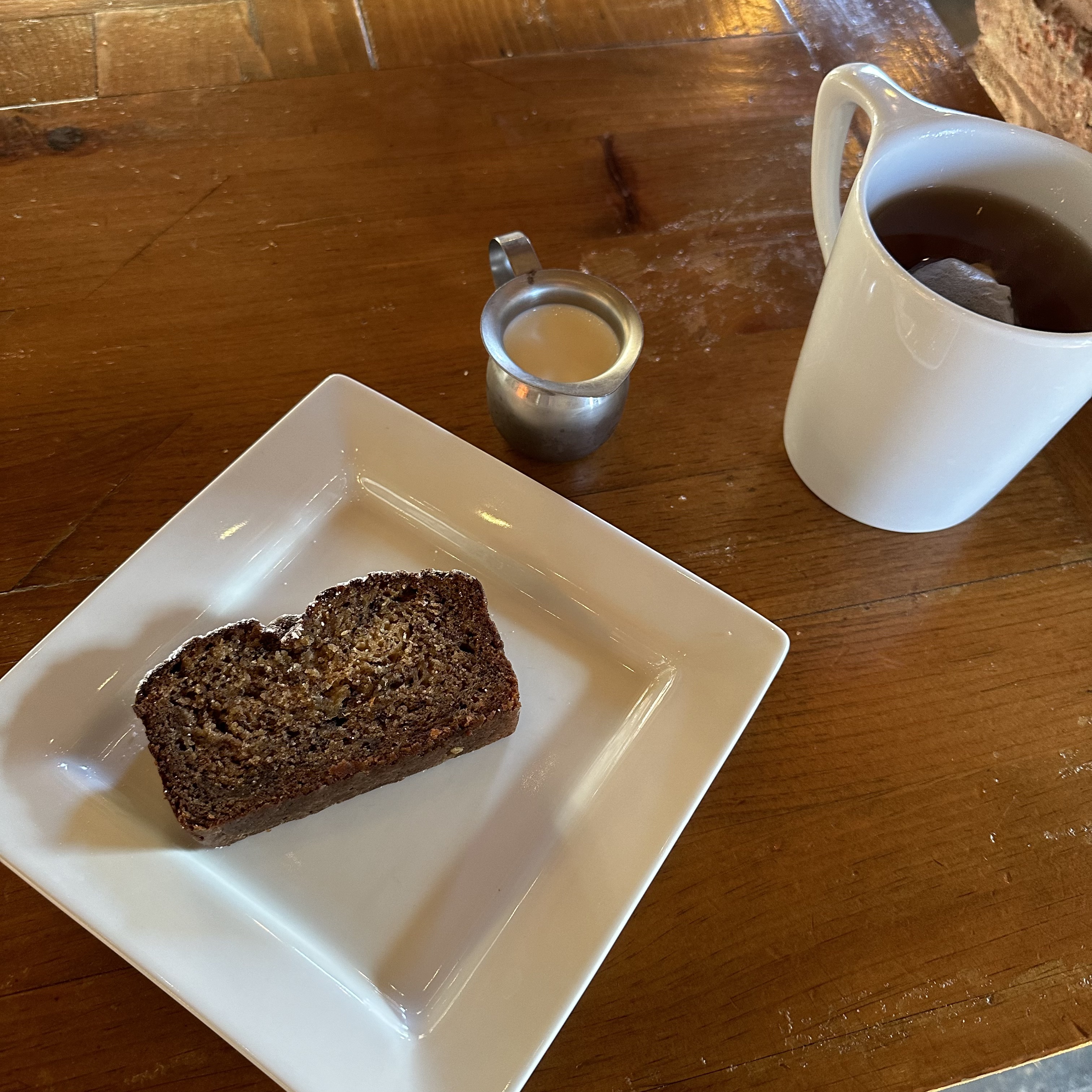 Breakfast was banana bread at Haute Coffee. Dinner was filet, brussels, and potatoes at home.