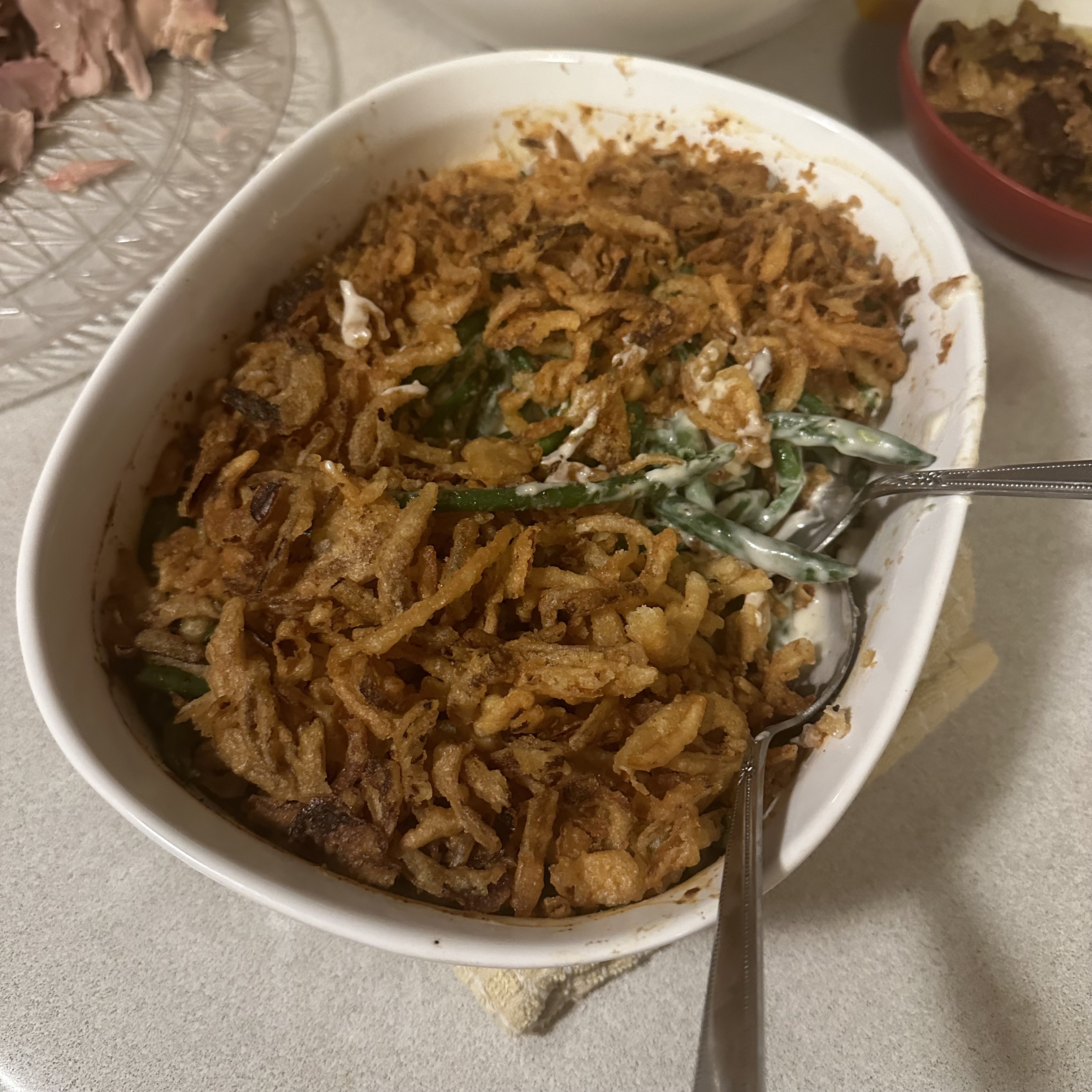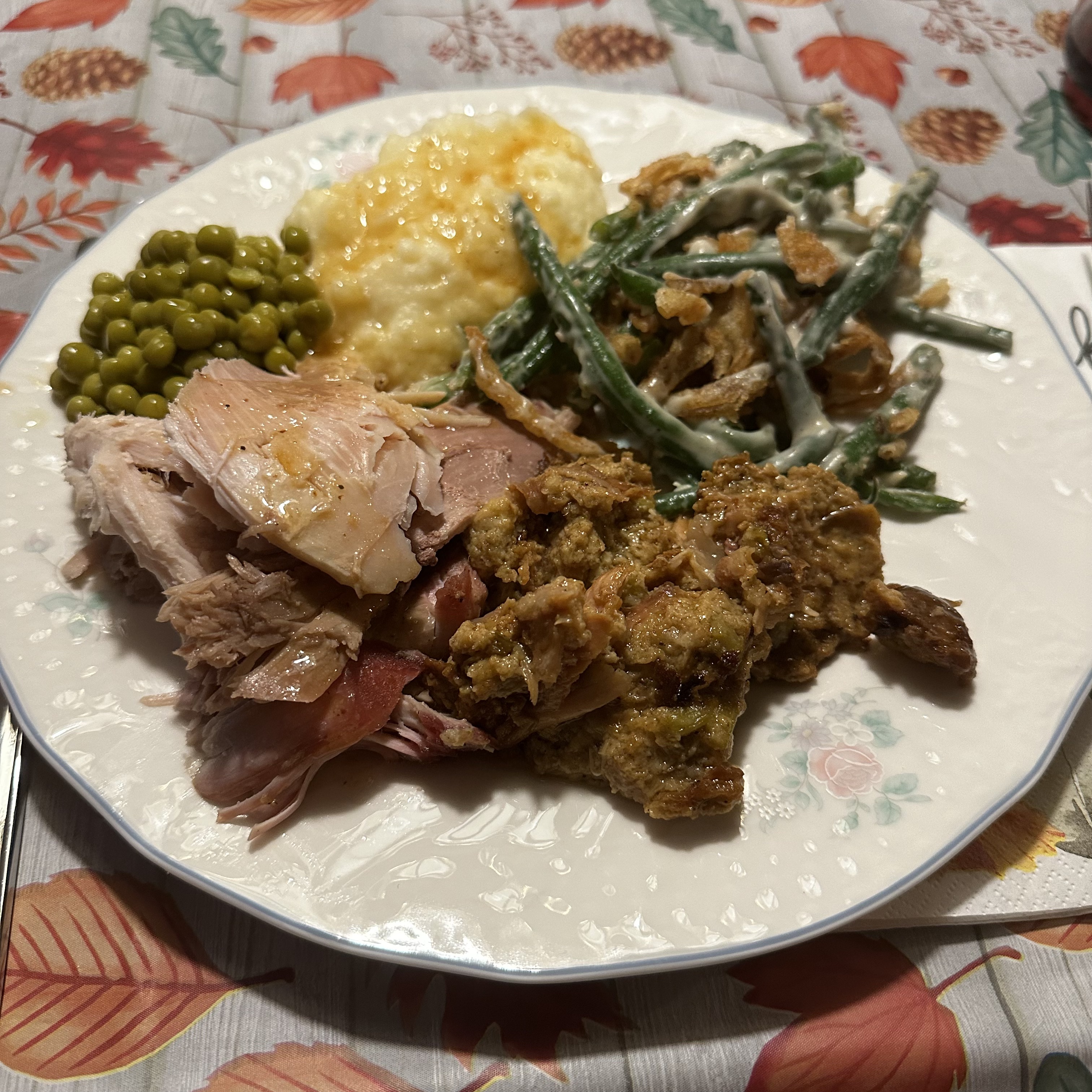 Happy Thanksgiving! I’m not feeling great, but I still did some cooking. I made stuffing and green bean casserole. The rest was prepared by others but it was all delicious.