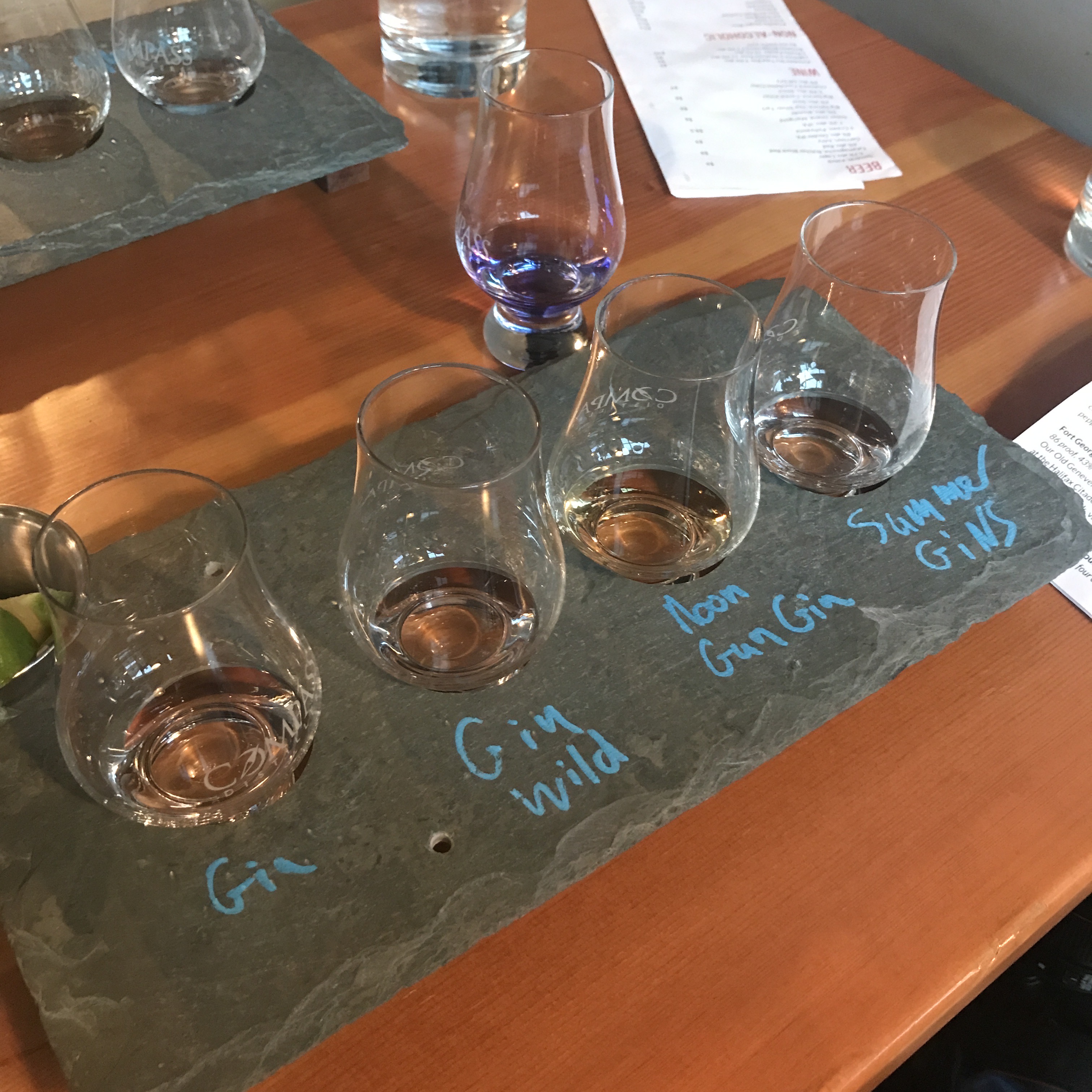 In 2019, our family trip was to Nova Scotia. On the morning of August 4, we visited the Halifax Citadel. There I picked up a bottle of Noon Gun Gin, no. 039, which is made by Compass Distillers. Later that day we visited the distillery and there I did a tasting of five gins that included Summer GiNS. I decided to buy a small bottle of it as well.