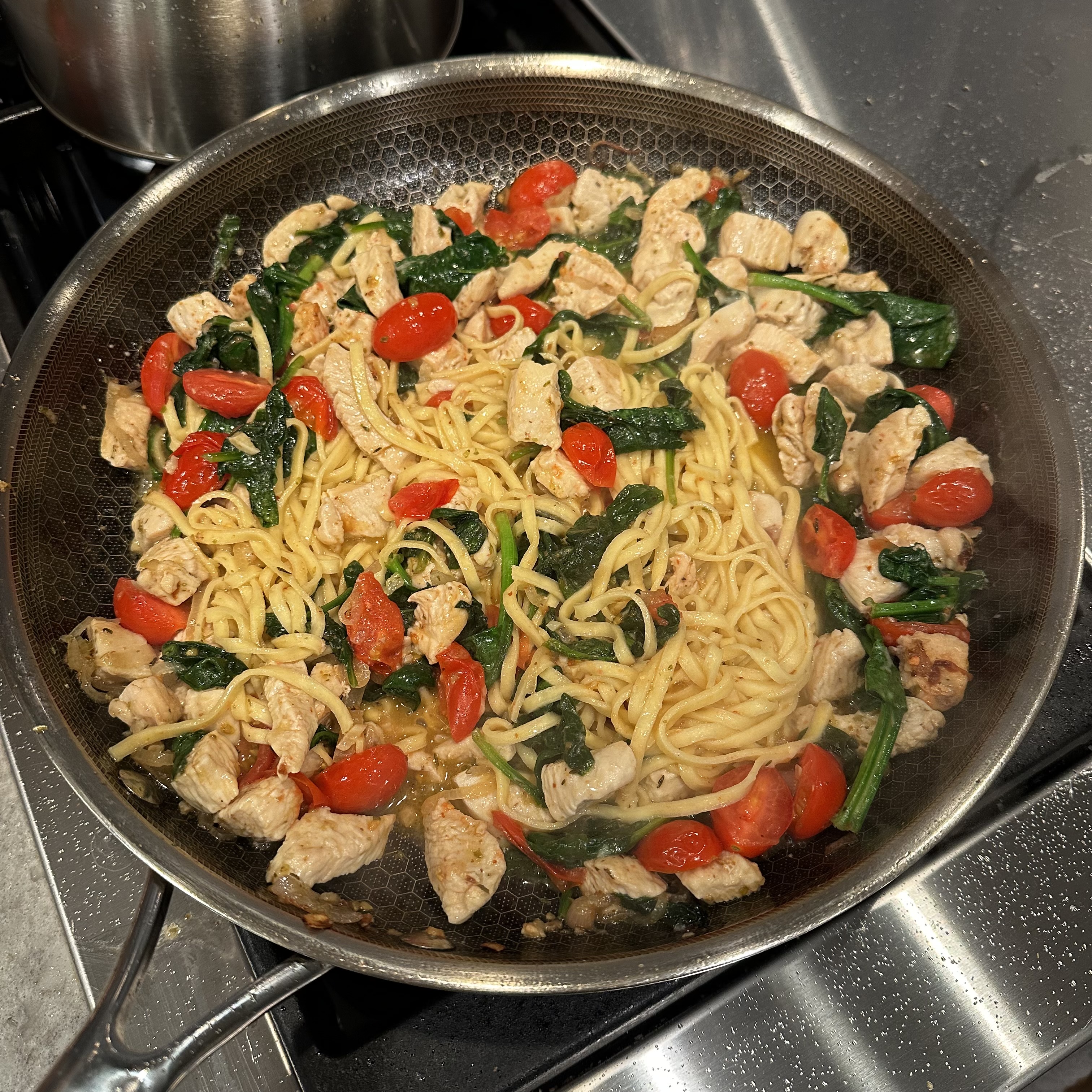 I cooked again tonight. Earlier this week my wife was kind enough to make dinner for me. I took her leftover ingredients and added a few extra things of my own to make a chicken pasta with garlic, tomato, shallot, and spinach. I also added just a pinch of the Guatemalan pepper powder which I love so much. I also had a sip of scotch to remember my grandmother who would have been 111 today.