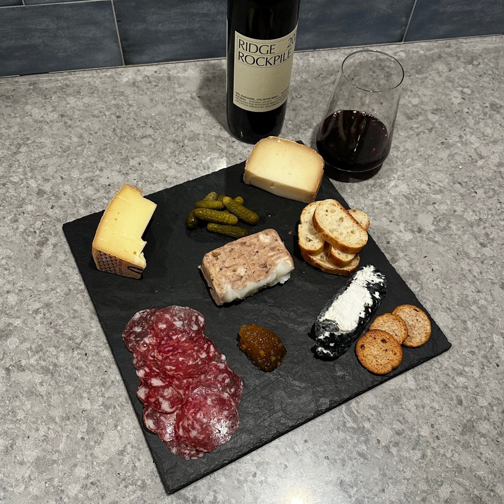 We had a wine and cheese night. We opened a bottle of Ridge Rockpile. The three cheeses were Old Witch, Le Secret de Compostelle, and Grey Owl. We also had pork rillettes and Rosette de Lyon which I picked up at Formaggio Kitchen. I also opened two bottles of gin that I have been holding on to for five years, Noon Gun Gin (no. 039) and Summer GiNS (no. 040).