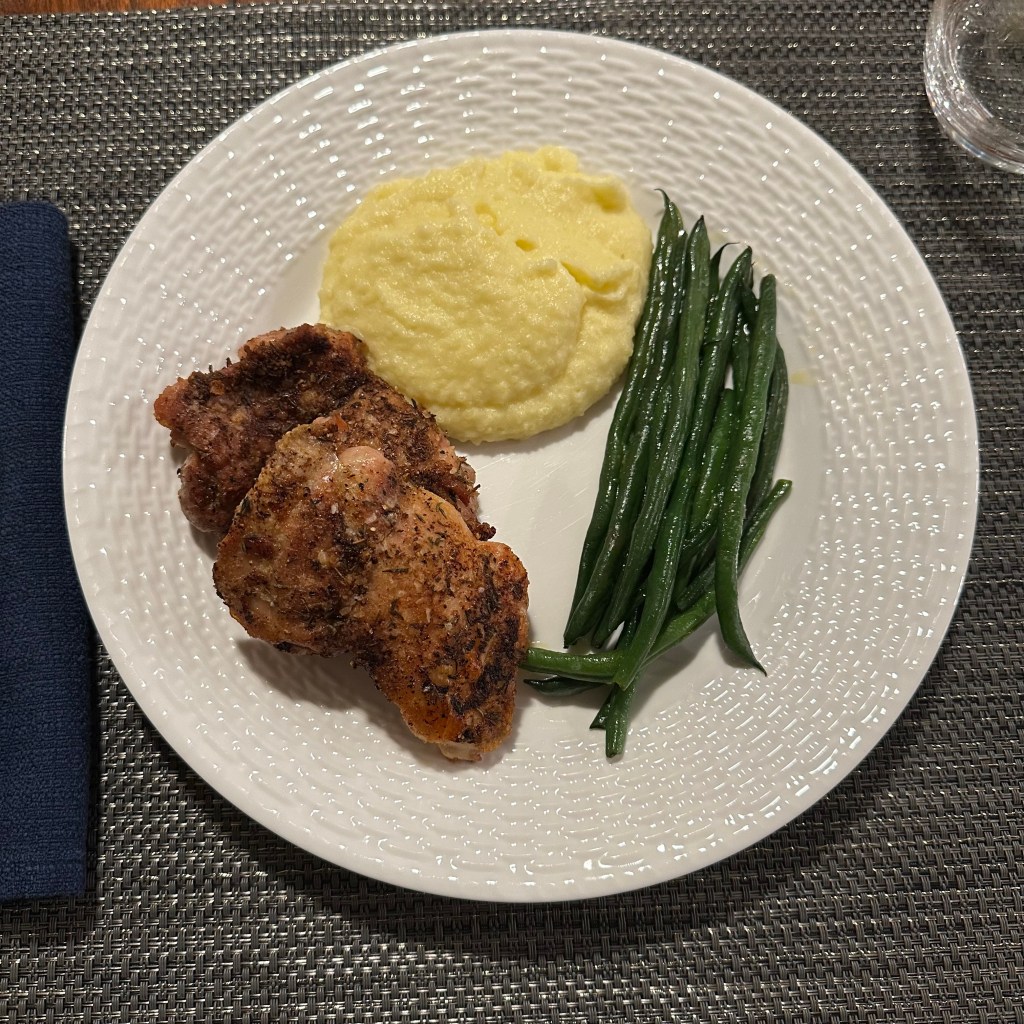 At my wife’s request and with the hope of getting my son to try a green bean, I made chicken, mashed potatoes, and green beans. I couldn’t get him to try one but I did get him to put one in his mouth with the promise that after he counted to three he could spit it out. The work continues. I