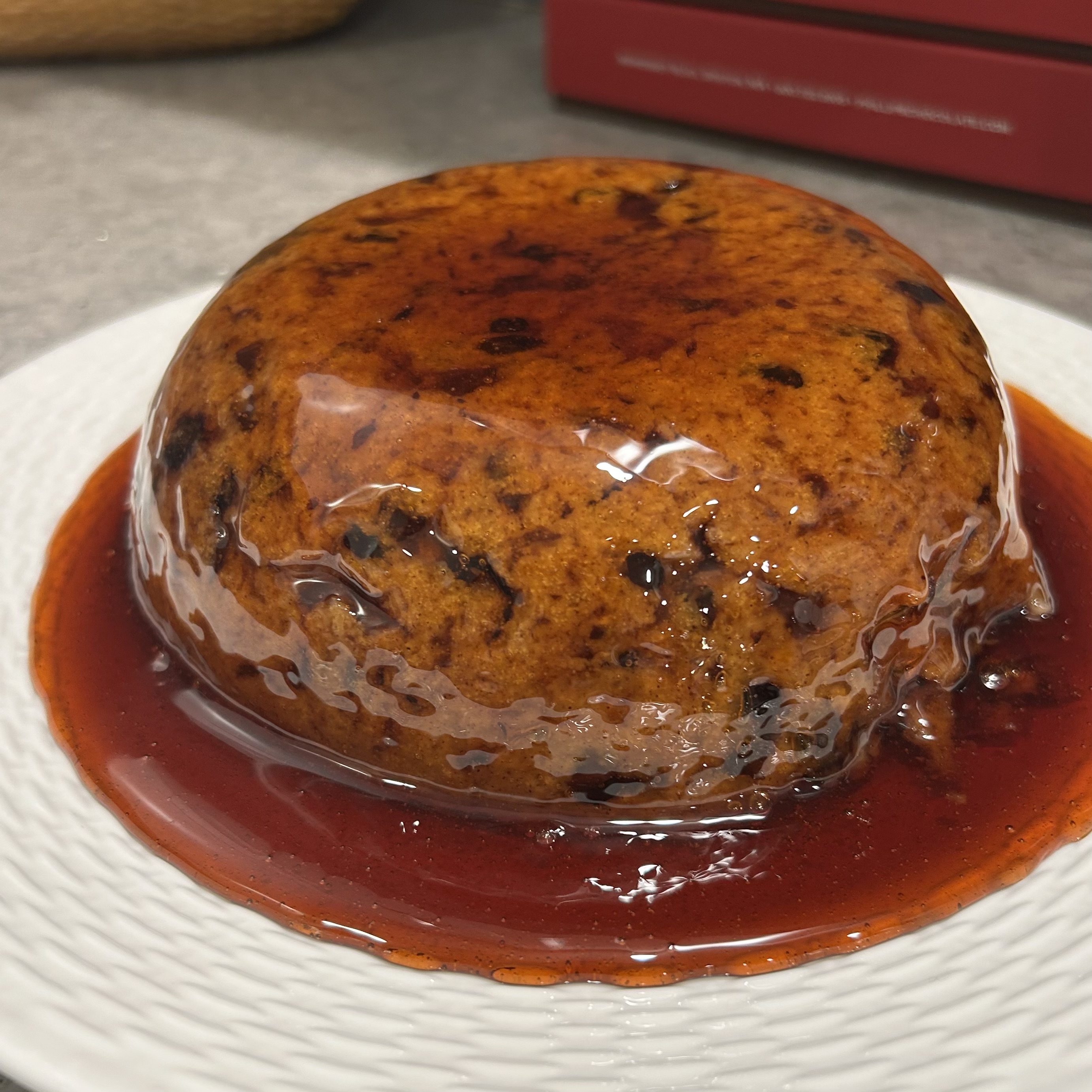 Marino and Jamie came over for dinner so I made carnitas, pinto beans, and rice. The beans turned out really great. Everything else was good too. But I post carnitas pictures all the time and plenty of taco pictures, so I’m going to share this special dessert my wife made, spotted dick. It wasn’t easy and the caramel was downright dangerous, but I really liked.
