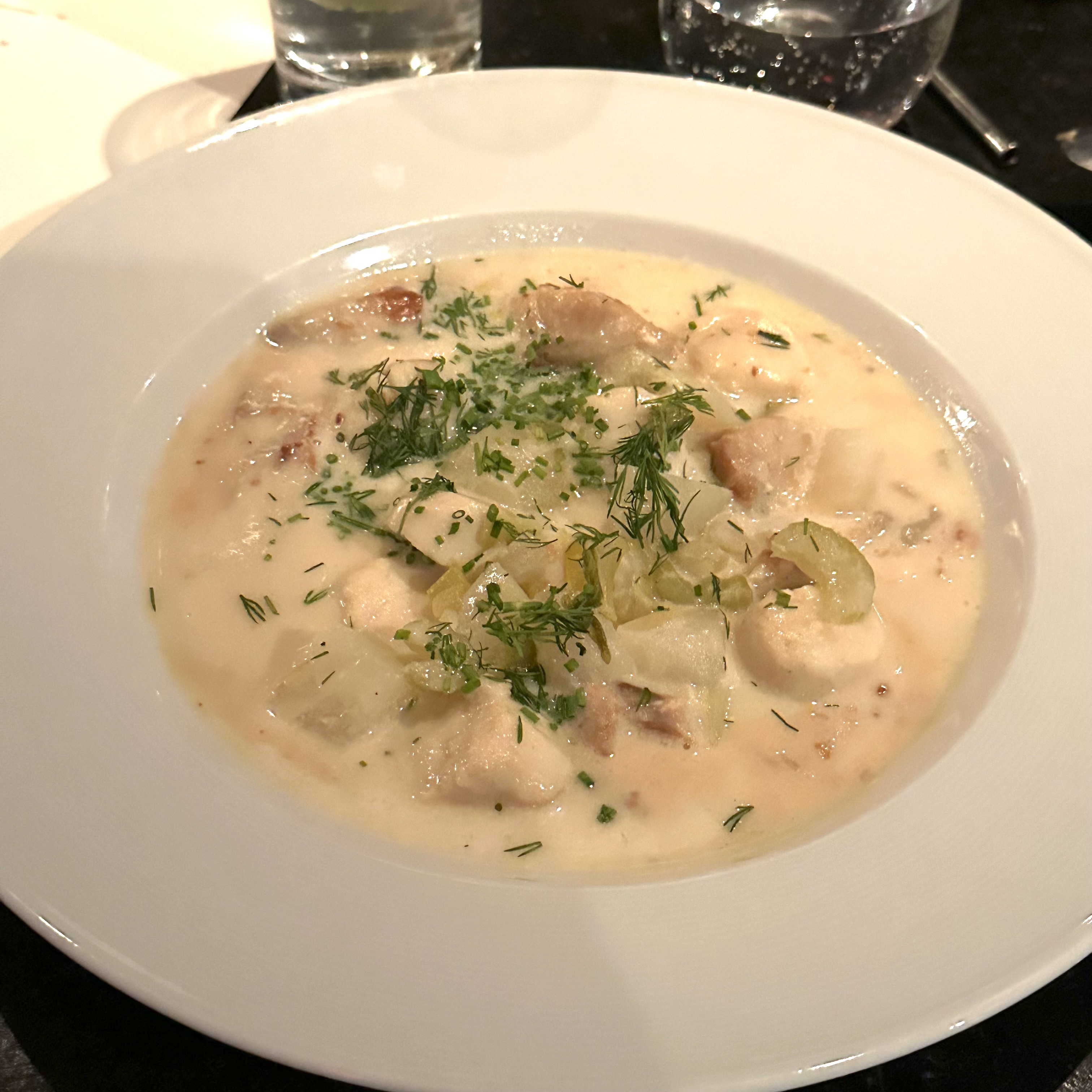 Last night we ordered from New London and got the wrong order so we ended up with two dinners. I saved my roast beef sub and had that for lunch today. Then I had dinner with Michael. We started at 80 Thoreau where we had an excellent panisse and then I had a smoked fish chowder. Perhaps it was a little too salty, but it was enjoyable. After that we went to Woods Hill Table and got their french fries. If you remember when McDonald’s used beef fat to make make their fires, these will bring back wonderful memories.