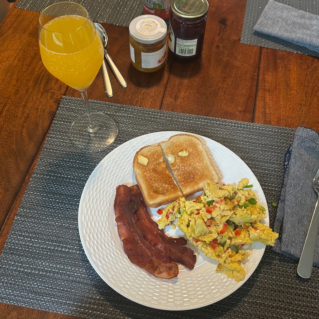 I made breakfast this morning, bacon and scrambled eggs with toast. Michael stopped by and brought a bottle of gin back from his trip to Ireland, Nora’s Irish Dry. We also took Thomas to Karma for dinner. We got a lot of the usuals, but Harvey also gave us a complimentary yellowtail and jalapeno that was very good.