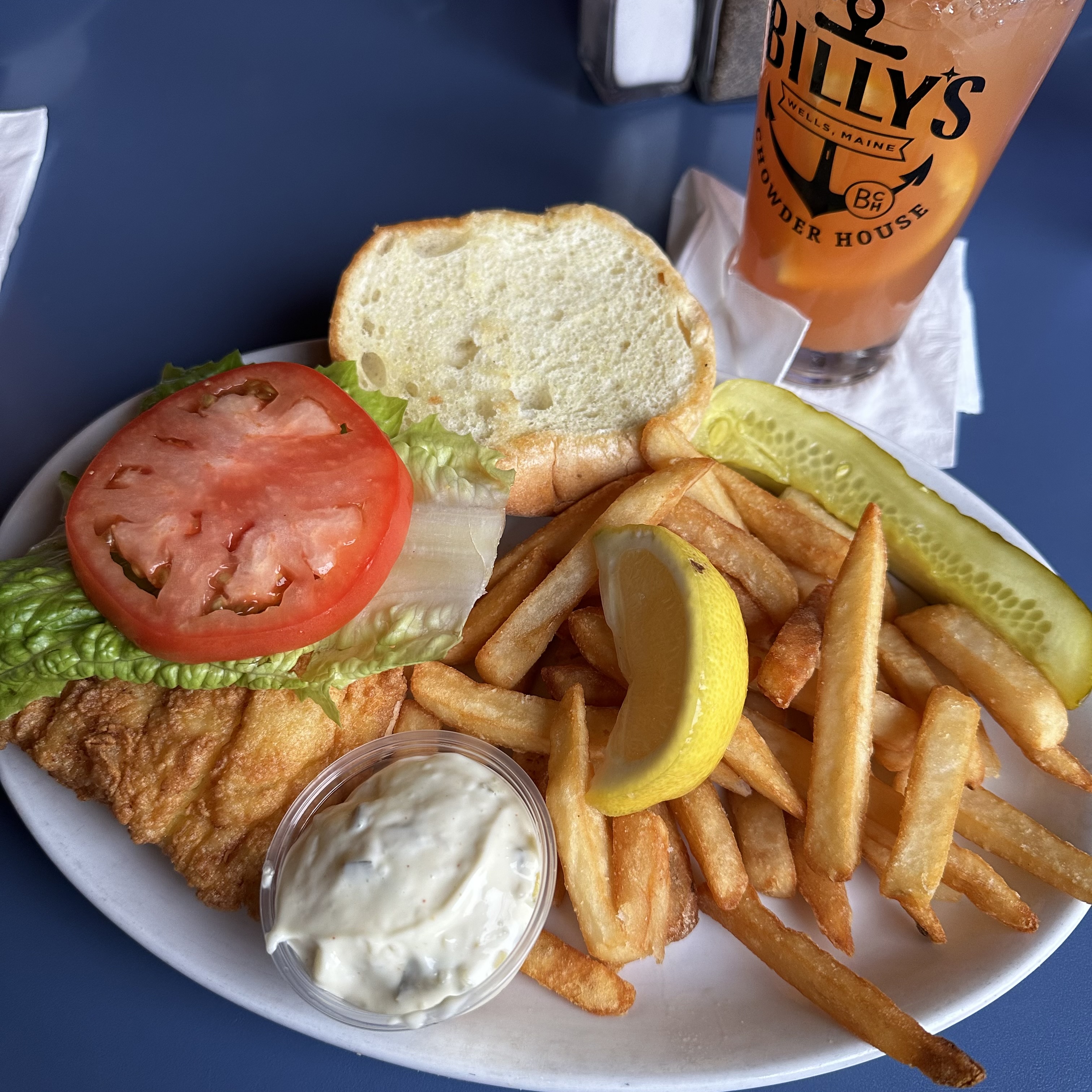 It’s hard to pick a single picture from today. Despite the damp weather we took a road trip up to Maine stopping in Wells and Kennebunk. Our first bite was at Billy’s Chowder House where we had some less than memorable chowder but a great fish sandwich and a lovely glass of rum punch. From there we went to Batson River Brewing in Kennebunk where we had a spectacular pretzel and of course a gin. From there, we stopped by The Clam Shack and got a blueberry hand pie that was pricy but worth getting again. Last we went to Allison’s Restaurant in Kennebunkport to get potato skins. They were great, but we should have skipped the blueberry brioche bread pudding and gone back for another hand pie.