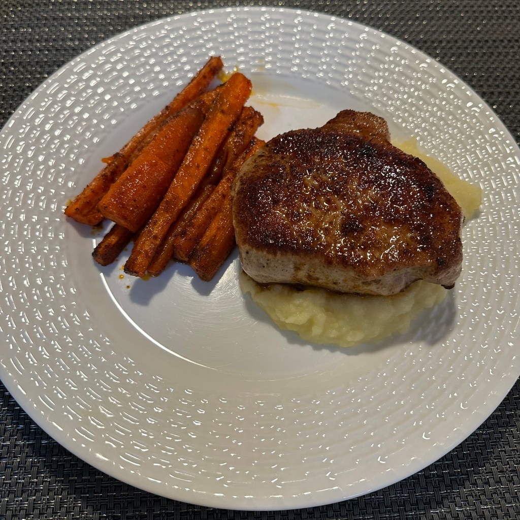 Tonight I made pork chops with mashed potatoes and roasted carrots. Simple but very good.