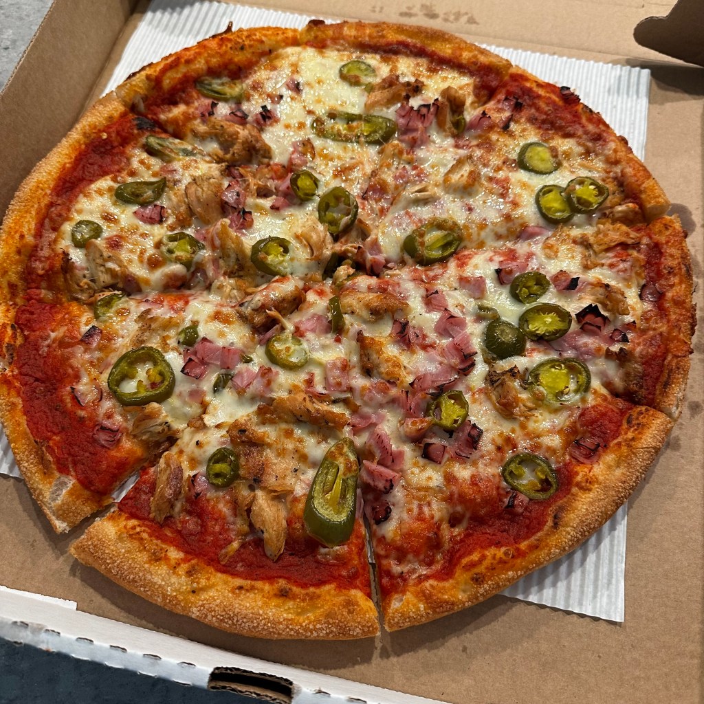 Pizza day, we got a chicken, ham , jalapeno pizza from New London. I also got another scoop of ice cream from Rancatore’s, strawberry.