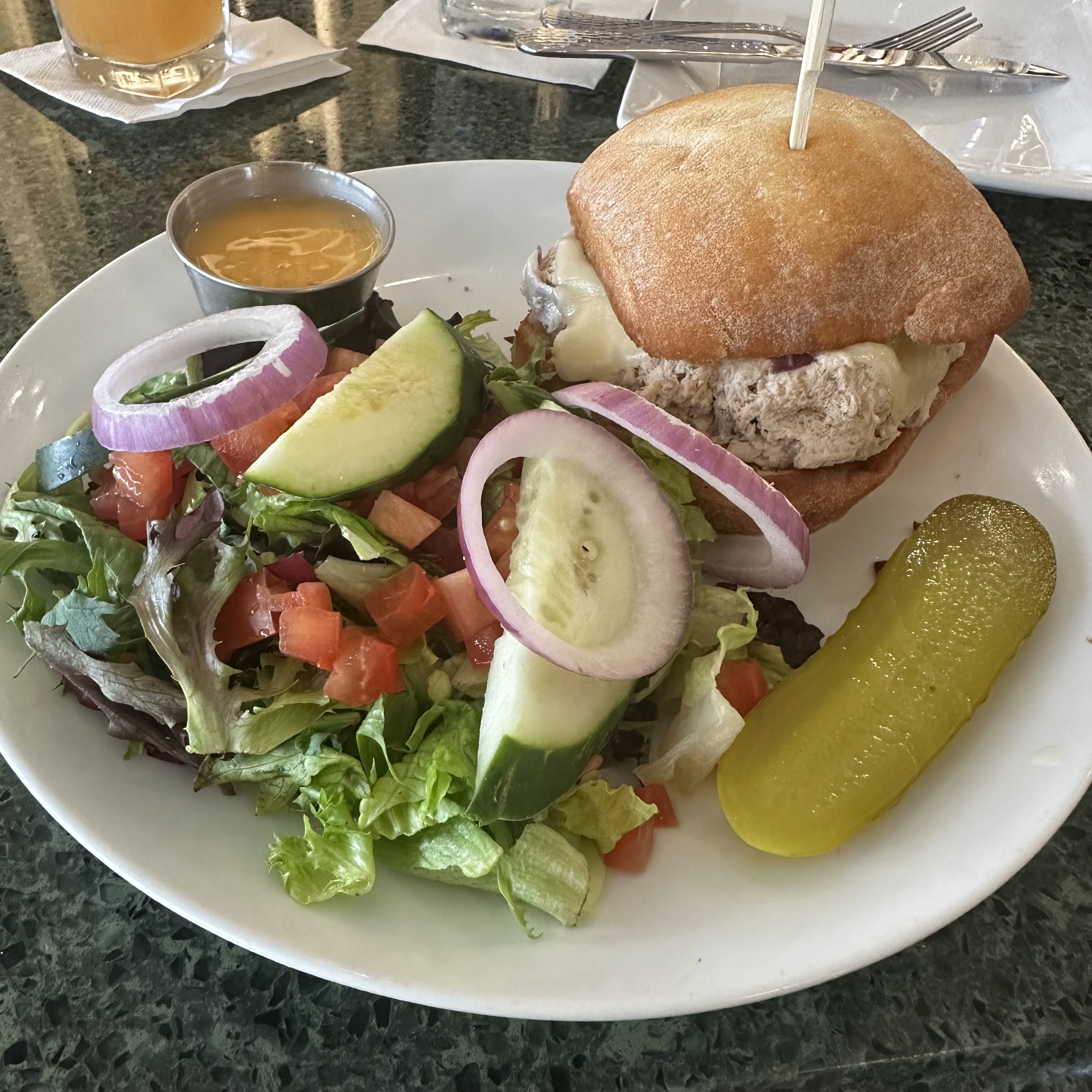 For lunch, Kelly and I went to Fishbones. I tried the chowder again and liked it better this time. I also got a tuna melt which was on their lunch specials list. It was good, but on ciabatta, which isn’t as good as on sliced bread. It also came with a little salad which didn’t excite.