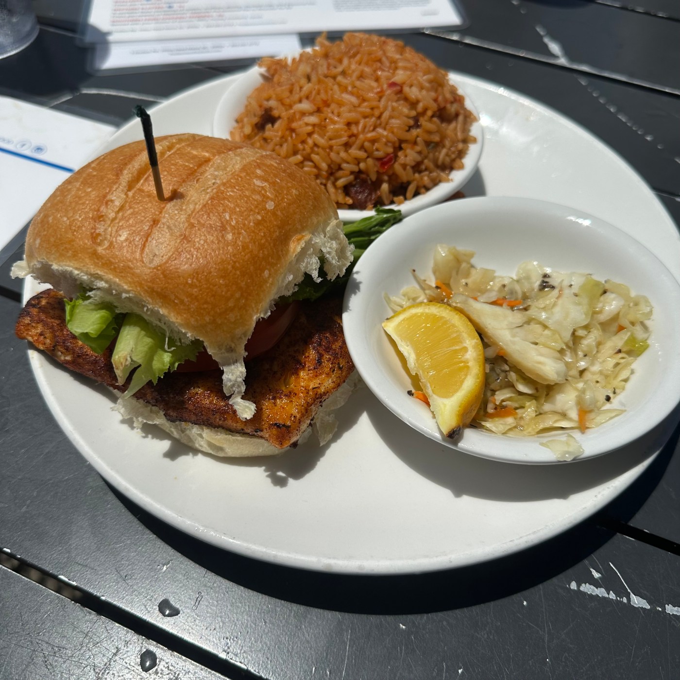 Click to see our latest meal at Hudson’s. Lunch consisted of : peel and eat shrimp, blackened flounder sandwich with rice and slaw, local stone crab claws, and peach-banana cobbler.
