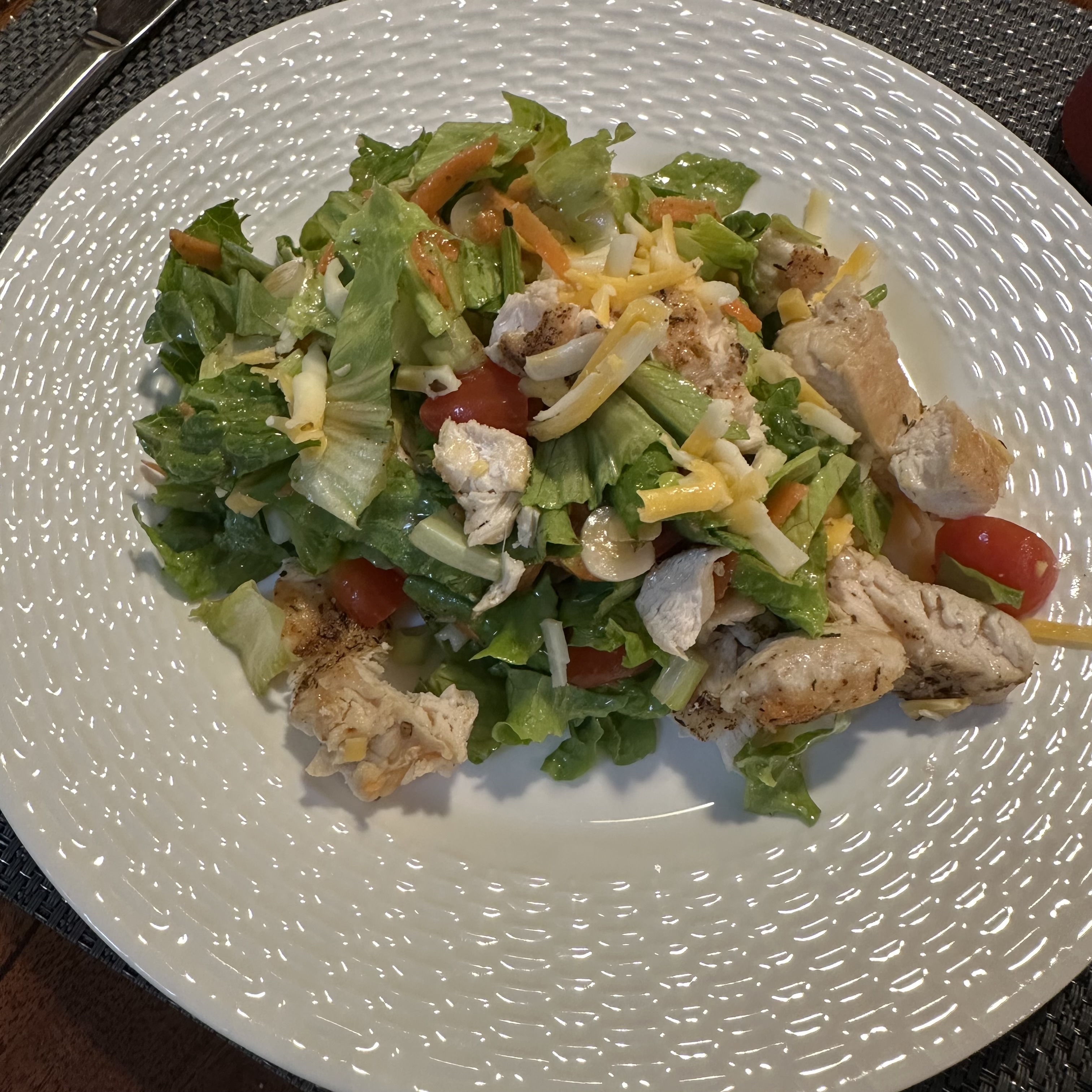 I have been trying to eat a little lighter so I fit into my shorts when I go to Hilton Head at the end of the month. Tonight I made a simple salad with chicken.