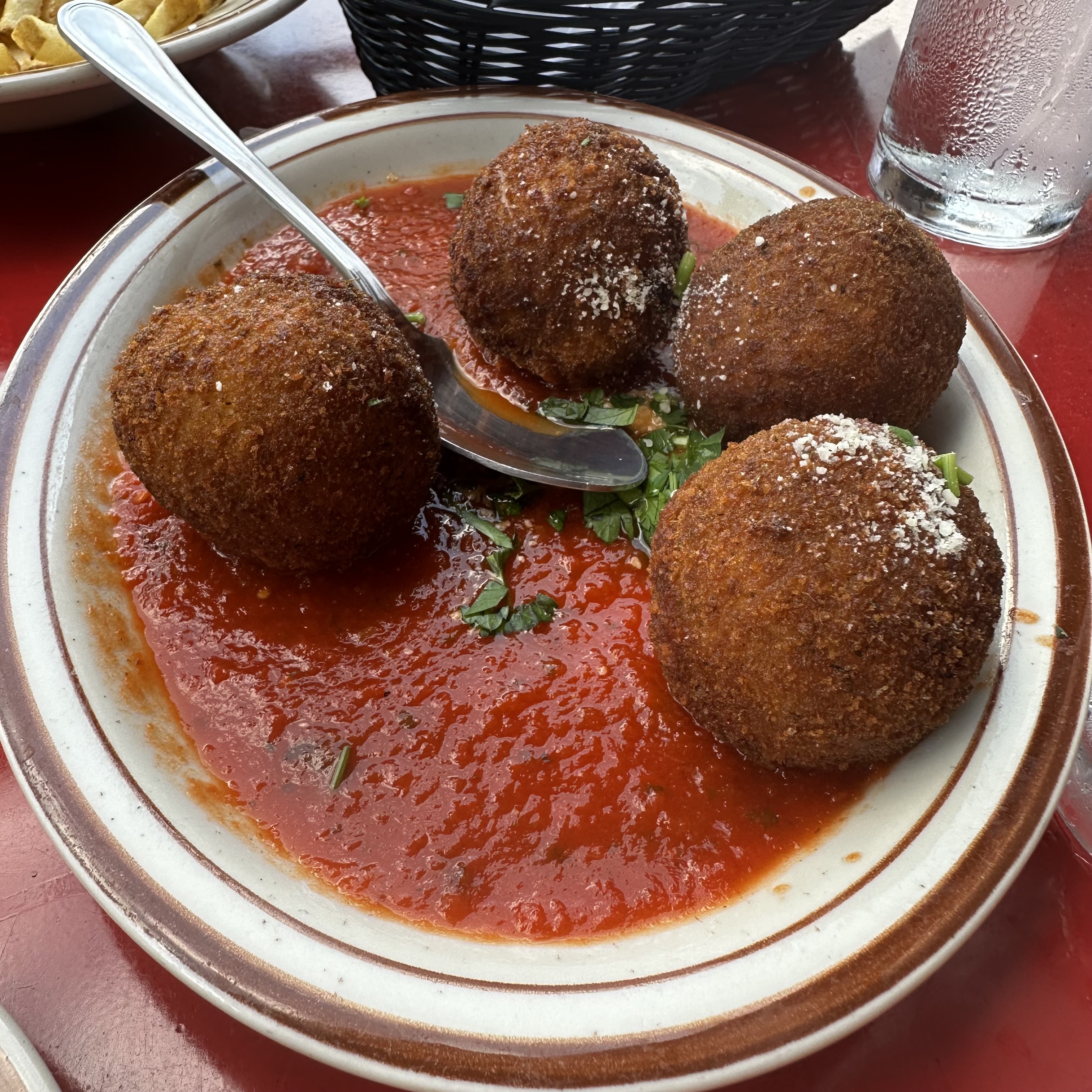 We don’t often go to Osteria Nino, but today we really enjoyed the short rib arancini. Despite the heat, upper 90s, we sat outside. Thomas got chicken fingers and fries and posted it to his Instagram.