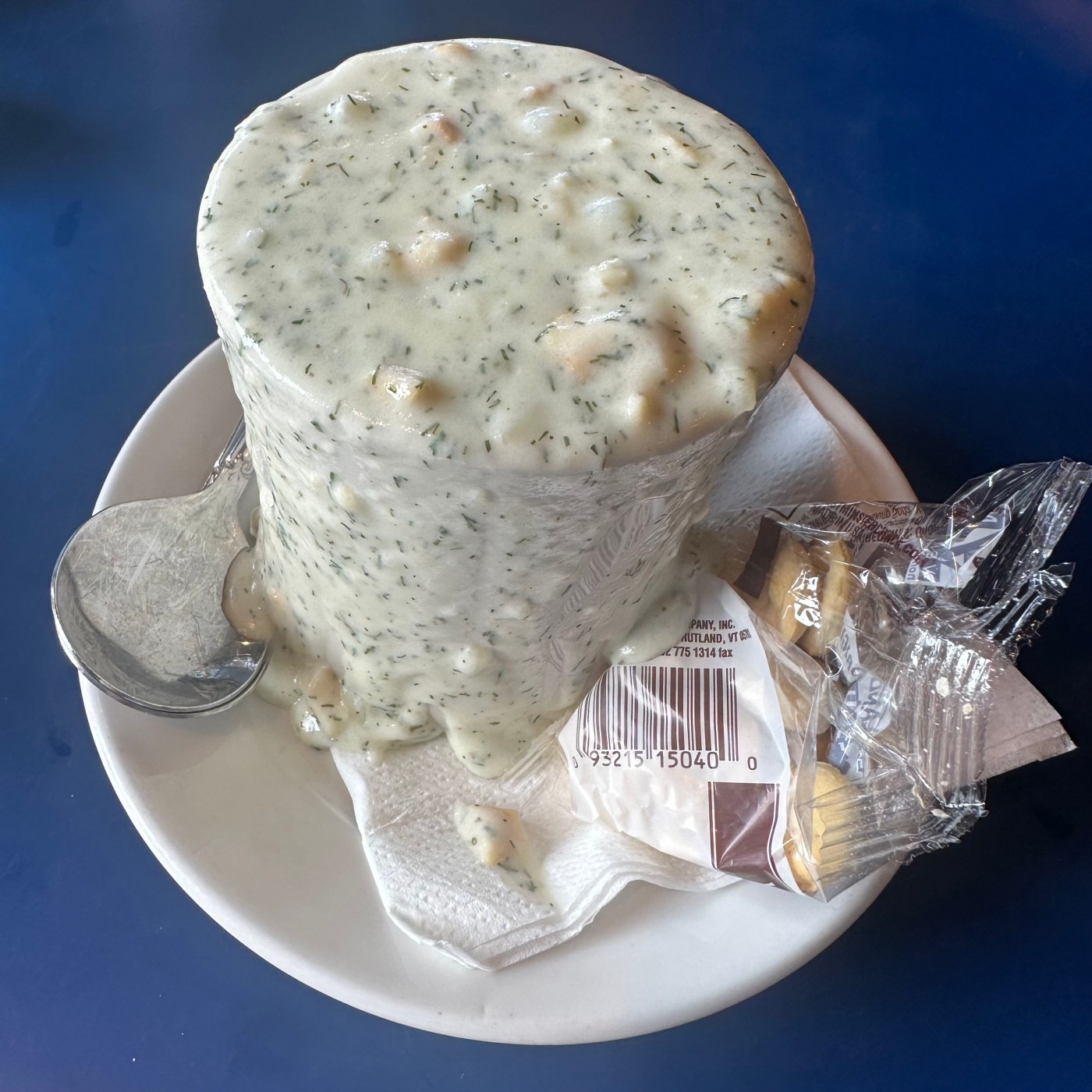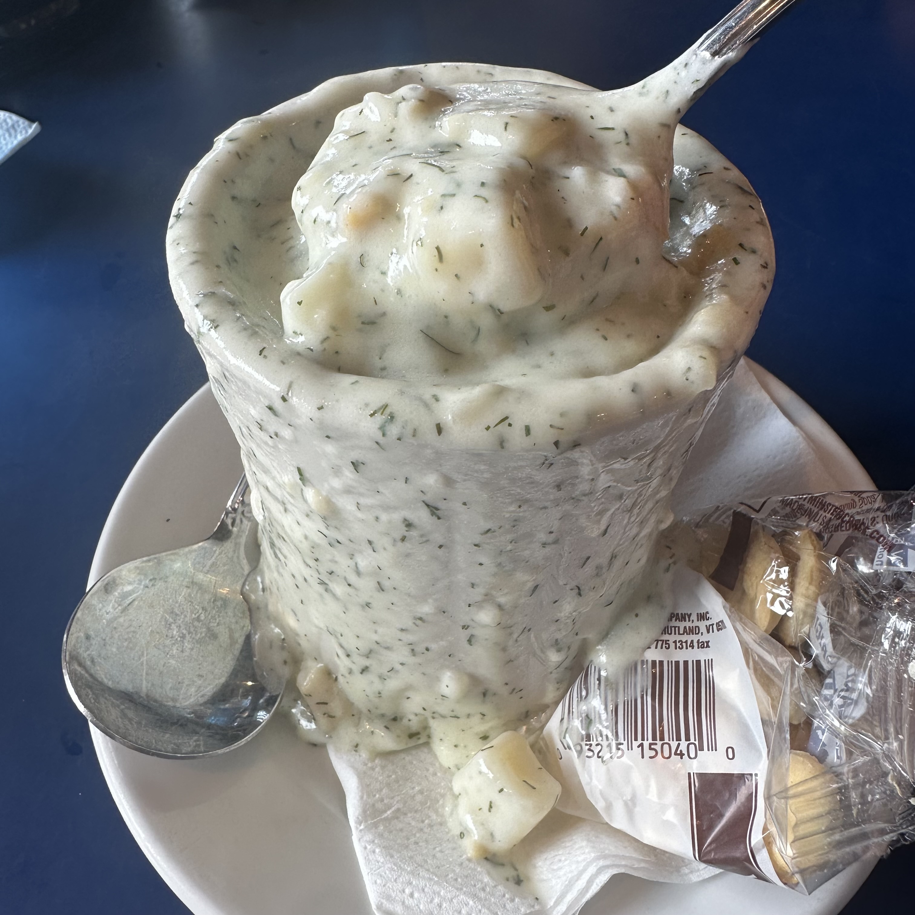 Westminster Bakers Co. oyster crackers, the go-to for New England Clam Chowder. The chowder really needed them.