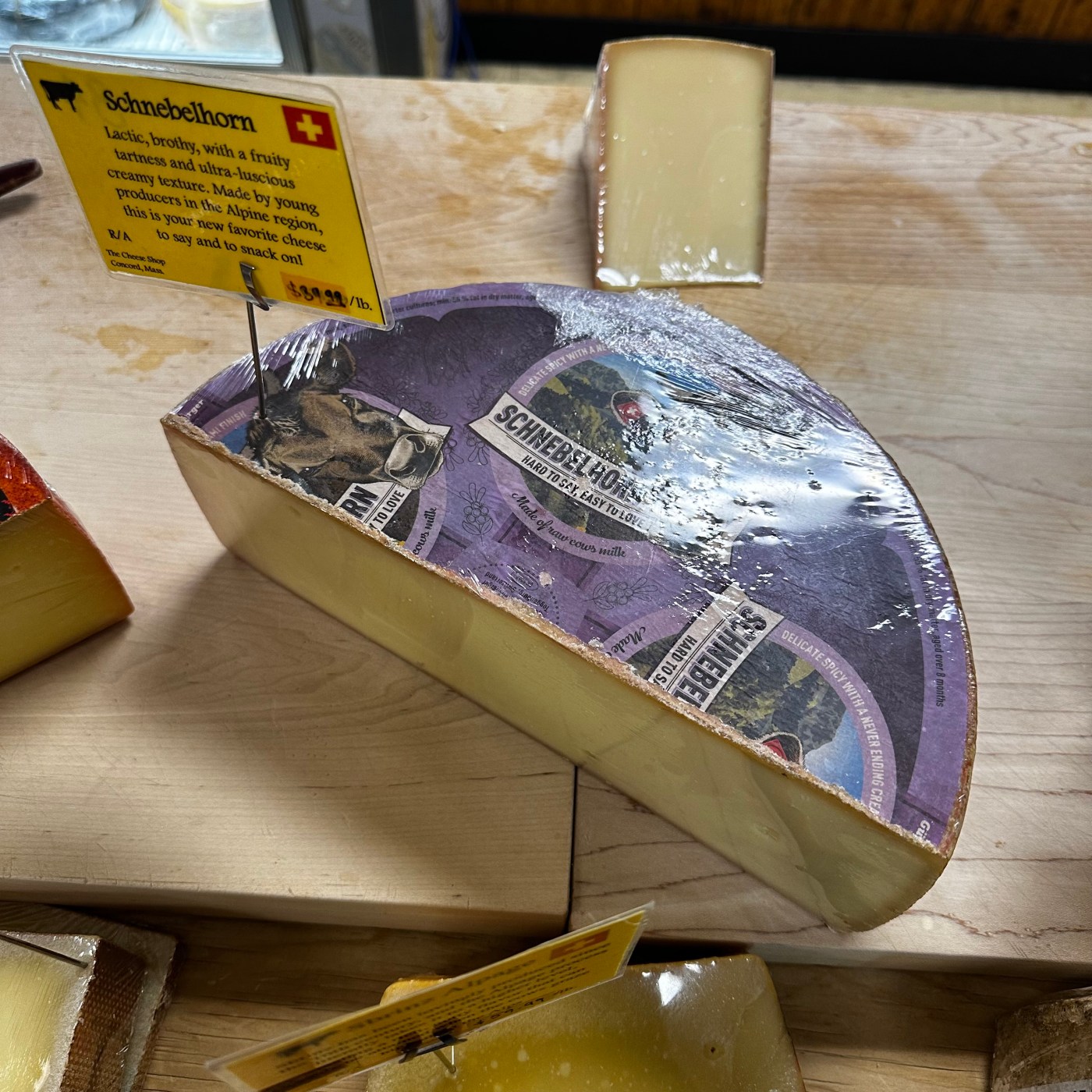 Swiss Apline cheeses are my favorites and Schnebelhorn is very nice. This cows milk cheese is made in St. Gallen. Cheesemaker Reto Güntensperger adds cream to his creation making it even more luscious and rich. Then it is aged for about nine months resulting in a beautiful nutty cheese with notes of allium. This is a wonderful cheese well worth the $39.99 per pound price.