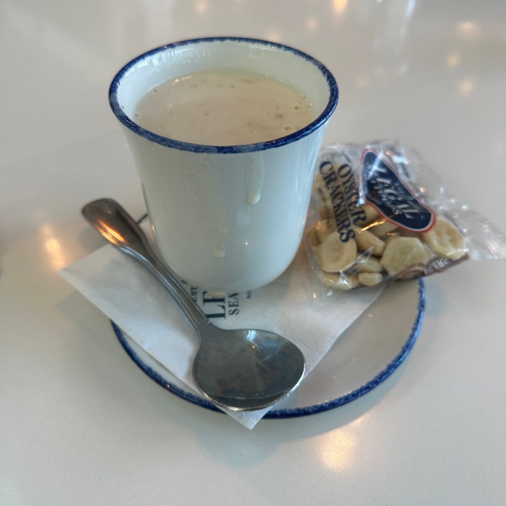 Clam Chowder at Legal Sea Foods in terminal B of Logan Airport. It was even better than normal with great big pieces of clams.