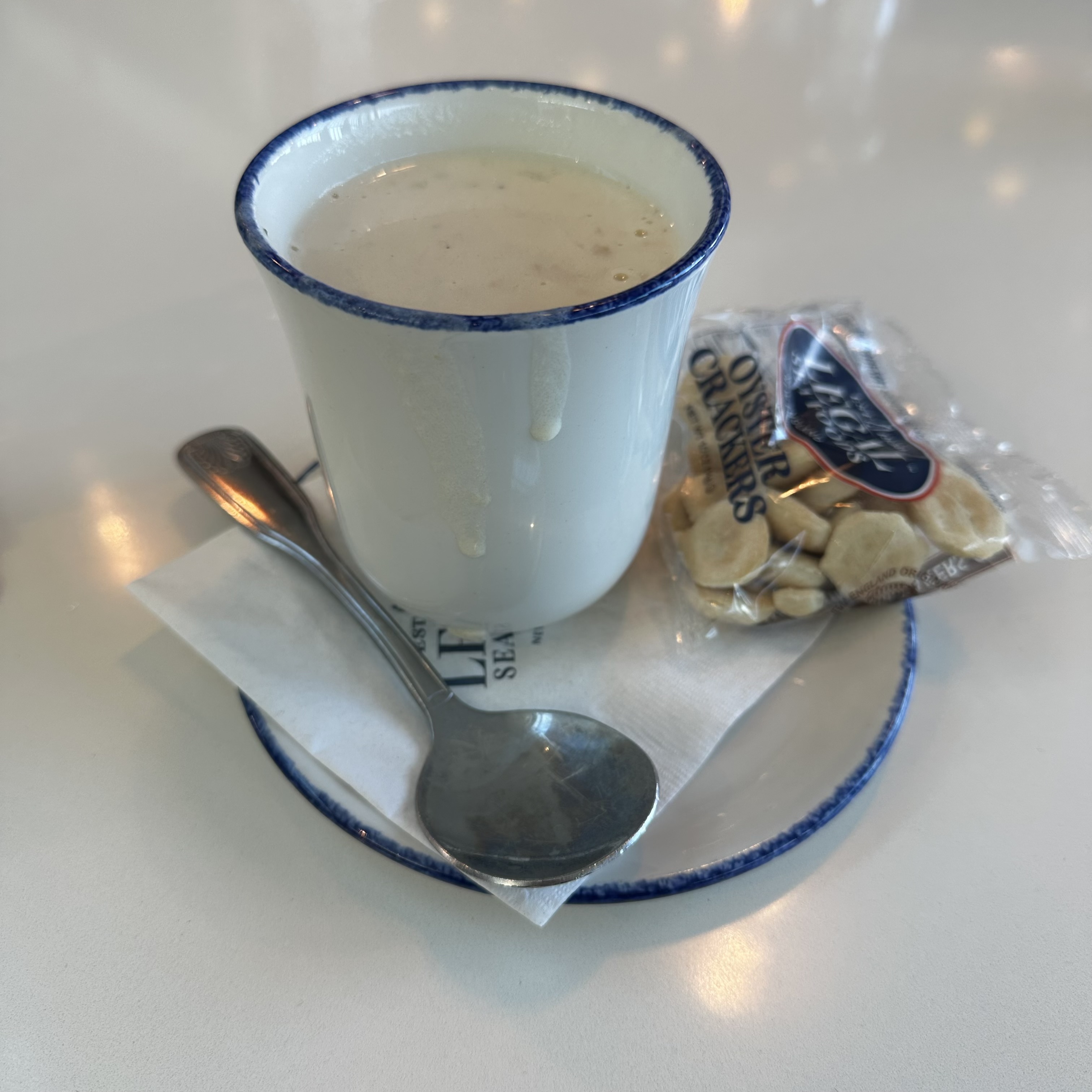 Clam Chowder at Legal Sea Foods in terminal B of Logan Airport. It was even better than normal with great big pieces of clams.