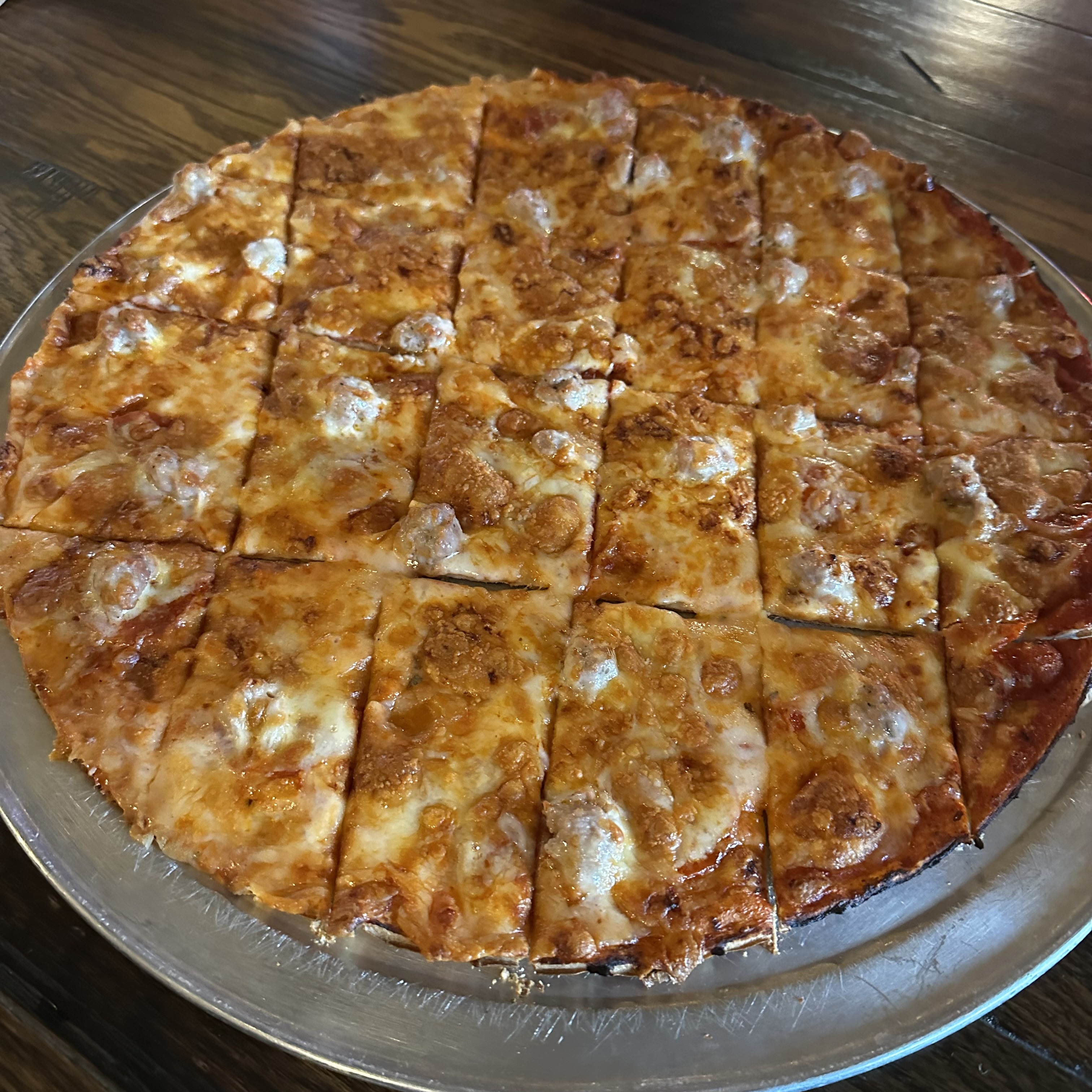 Sausage and Pepperoni pizza at Imo’s in Kirkwood, MO.